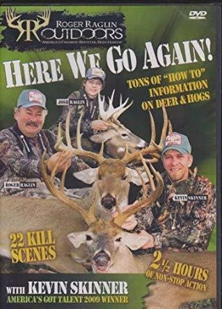 The Stoney Wolf Productions Here We Go Again! DVD by Roger Raglin contains tons of "how to" information on deer and hogs. It features 2-1/2 hours of non-stop action. After overcoming another horrific health incident, Roger Raglin heads out once again for his annual free for all across the country in search of trophy big game animals. After shooting one of the biggest antelope bucks in his life, Roger also puts down another monster wild boar weighing over 500 pounds! The whitetail action takes over with hunts in Illinois, Iowa, Mississippi, Indiana, and Texas with some mega surprises along the way. Roger's new partner in the business is his youngest son Josh, who gets in on the fun shooting his first whitetail with his Matthews bow as well as several nice bucks to boot. Not to be out done, Roger knocks down several brutes over the 160 B & C mark as well as a number of other good bucks. Roger is also joined by a special guest, Kevin Skinner, winner of America's Got Talent in 2009. He and Kevin have quite a time as Kevin shoots a great south Texas buck.