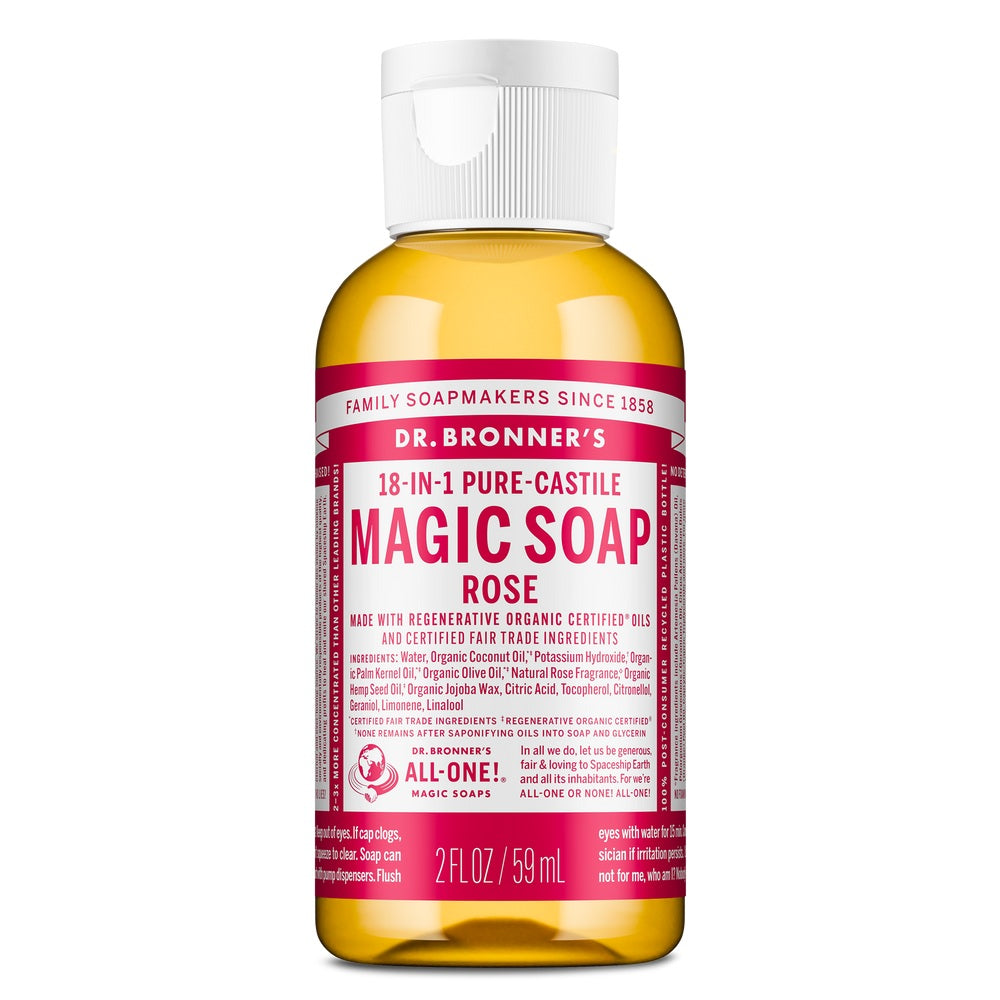 Indulge in the scent of fresh roses with Dr. Bronner’s Rose Liquid Soap. This true soap is infused with a high concentration of naturally derived rose fragrance, leaving skin feeling soft and refreshed. Made with Regenerative Organic Certified® oils, it creates a rich, luxurious lather that cleans while rinsing clean. Crafted with organic, ethically sourced ingredients—no detergents, dyes, or added foaming agents. Vegan, made with organic oils, fair trade, and EWG Verified®—shower with trust!