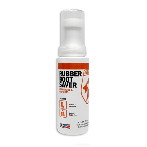 Sun damage, blooming and excessive drying can wreak havoc on rubber boots. To keep rubber looking and performing its best, reach for Rubber Boot Saver by Gear Aid™. Rubber Boot Saver is a rubber conditioner and UV protectant that not only moisturizes plastic and rubber boots, but also protects them from UV exposure, dirt and oils.