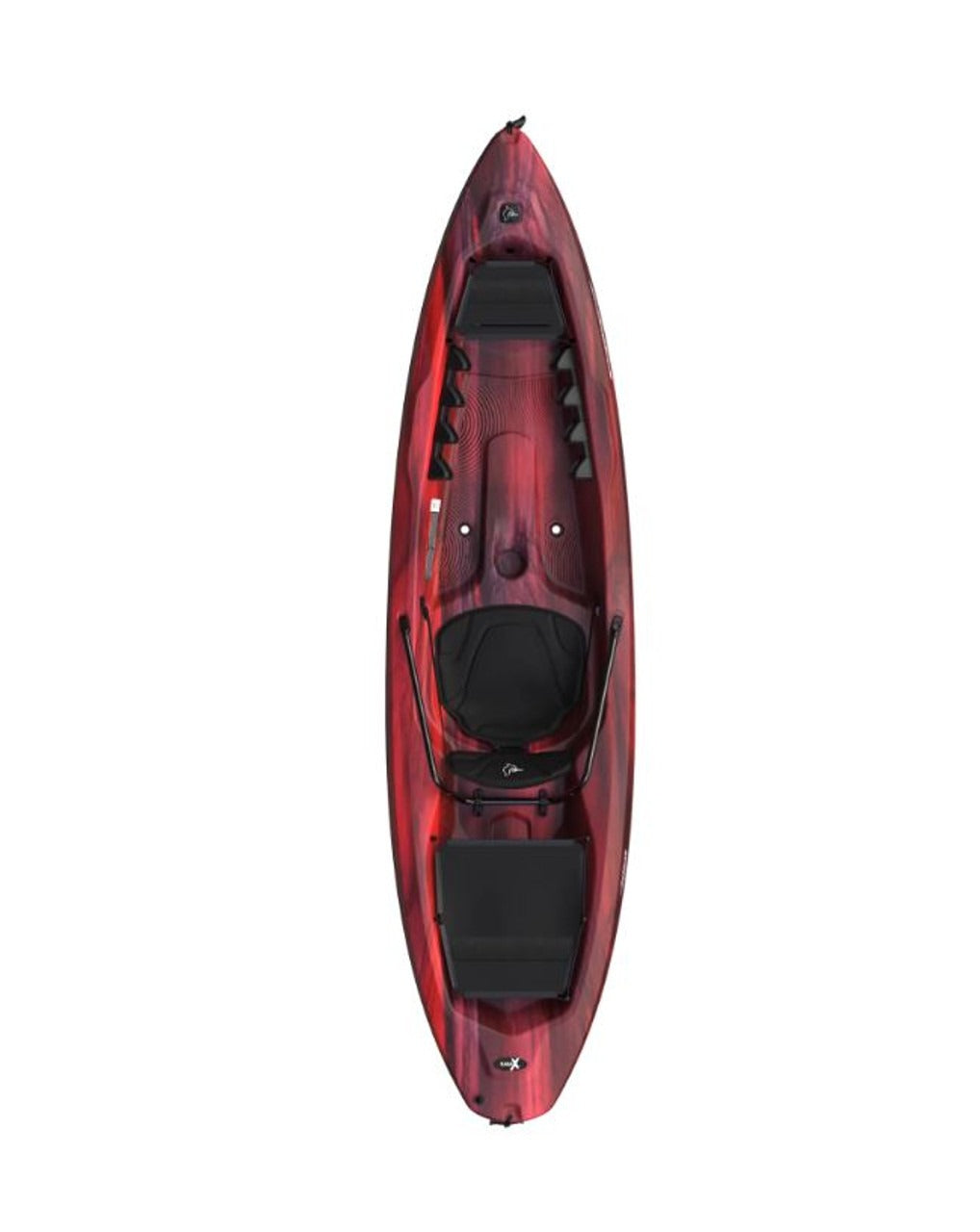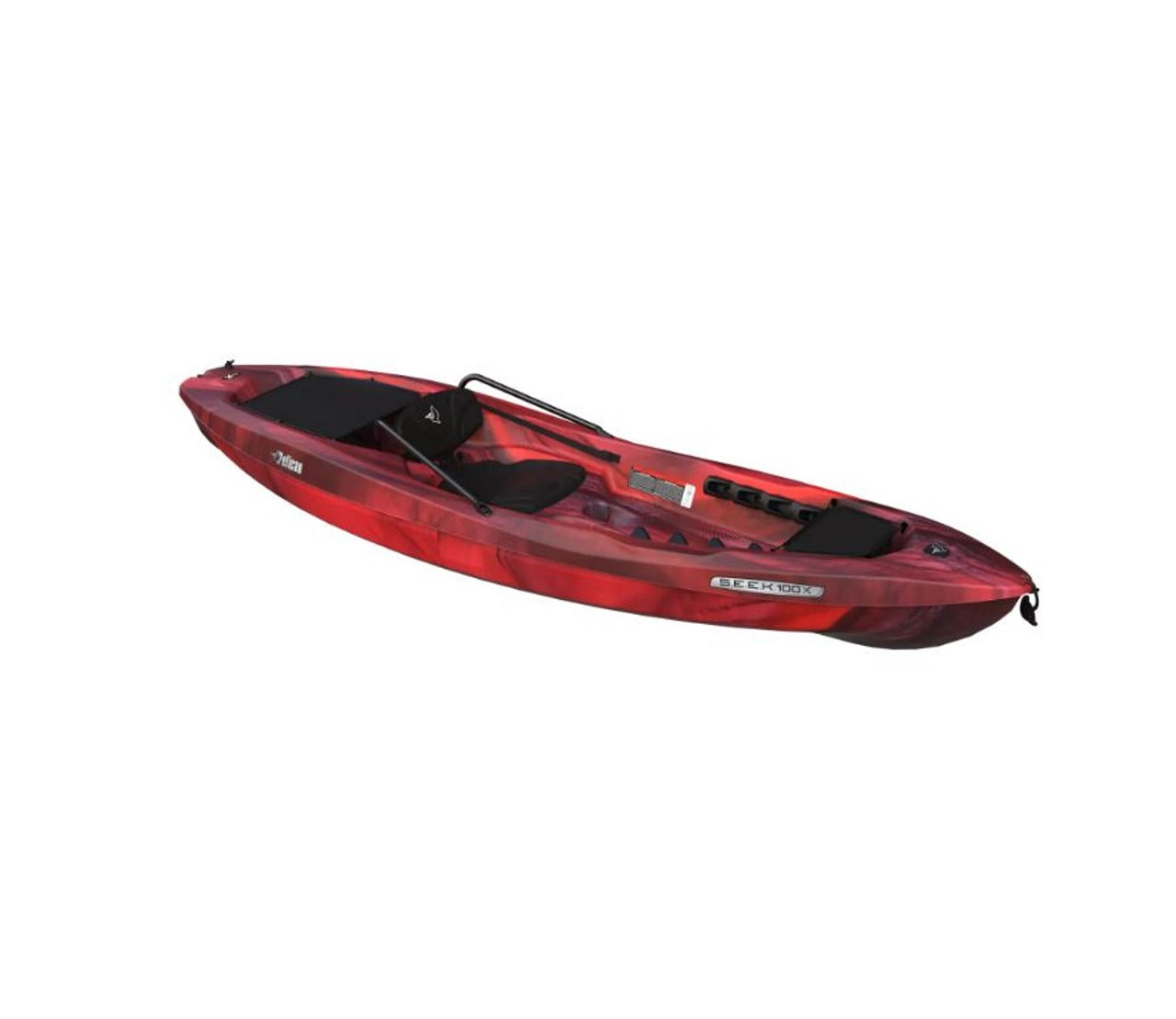 Step into the SEEK 100X recreational kayak, designed with the assist of VR technology to deliver the ultimate secure and stress-free kayaking experience for beginners. Crafted for unmatched stability and ease, this sit-on-top kayak offers effortless entry and exit, a slip-resistant design, and convenient gear access to maximize your adventure. Featuring an innovative easy-access system with a side bar and recessed standing area, it ensures all essentials are within reach from a seated position, simplifying transitions in and out of the kayak. The dynamic hull shape provides a secure, enclosed paddler's position unlike traditional flat sit-on-top kayaks, while the stable access bar stays perfectly clear of paddle strokes. Additional features include a ripstop tank-well cover with bungee cord and a ripstop bow zipper bag for convenient and durable storage solutions. Perfect for new paddlers or those gaining experience, the SEEK 100 is your ticket to unforgettable water adventures.