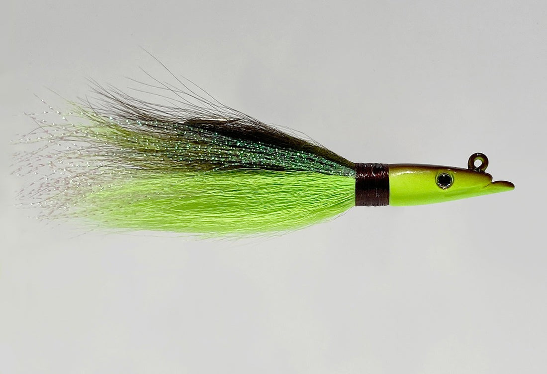 The Mr. Bills Sand Eel Bucktail Jig is a favorite of most all game fish around the world. Handmade and custom tied with deer hair and sparkle fibre gives this jig LIVE FLASH. Finished with live eyes, epoxy-coated head, and wrap. Great for vertical jigging and casting from a boat or shore. Built-in keeper to rig with your favorite paddle tail, swimbait, or strip bait. High-quality custom molded jigs built to take a beating and proven to put fish on the deck.