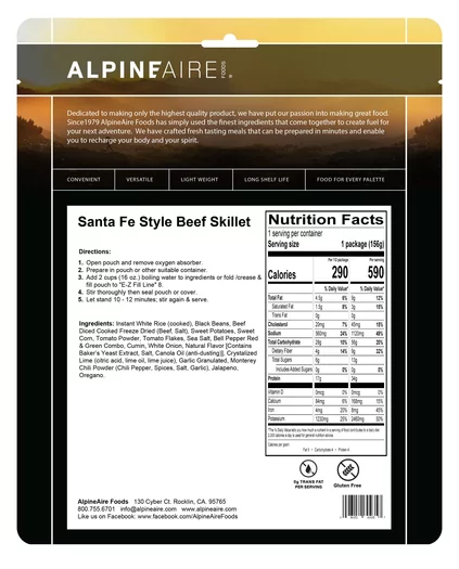 A zesty southwestern flavored combination of black beans, sweet potatoes, and peppers paired with beef and rice.