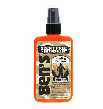 Take maximum insect protection into the field with Ben’s Hunting Formula. This long-lasting, scent-free insect repellent is specially designed for hunting (and fishing!) and will not damage gear or clothing. This 20% picaridin bug spray provides 12 hours of rugged protection from ticks and mosquitoes so you can stay bite-free all day.