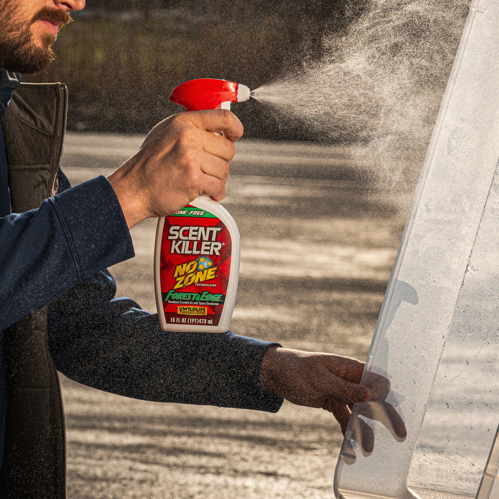 Enhance your scent control strategy with the Scent Killer Forest Edge Air and Space Deodorizer. Formulated with NO ZONE™ Technology, this spray effectively neutralizes odors at the molecular level, making it ideal for larger spaces like rooms, vehicles, and gear storage. The 16oz. size offers convenient portability for on-the-go use. Whether you're preparing for a hunt, managing gear, or maintaining scent-free environments, the Scent Killer Forest Edge Air and Space Deodorizer is a reliable choice for effective odor control.