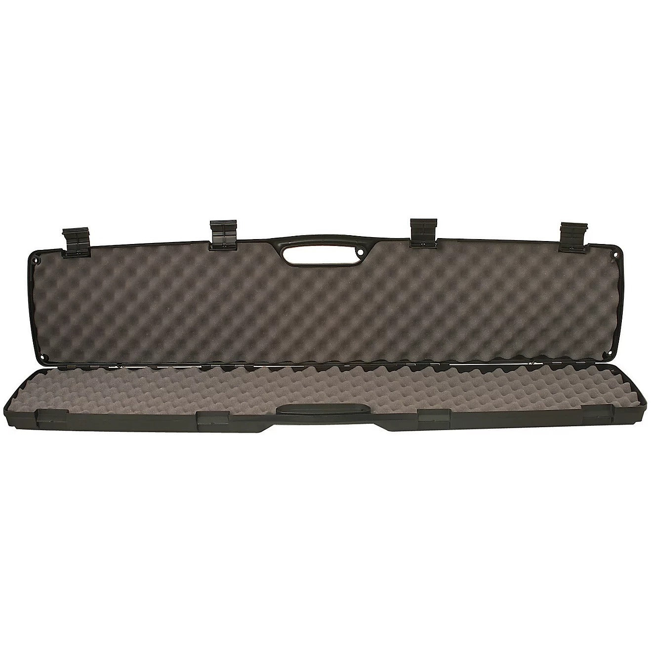The SE Series Single Scoped Rifle Case from Plano offers durable storage without damaging your rifle. The rigid, ribbed polypropylene construction is strong, and the foam padding protects your rifle in the case. Padlock compatibility and 4 contoured, recessed latches provide safe storage, and the recessed handle makes carrying simple.
