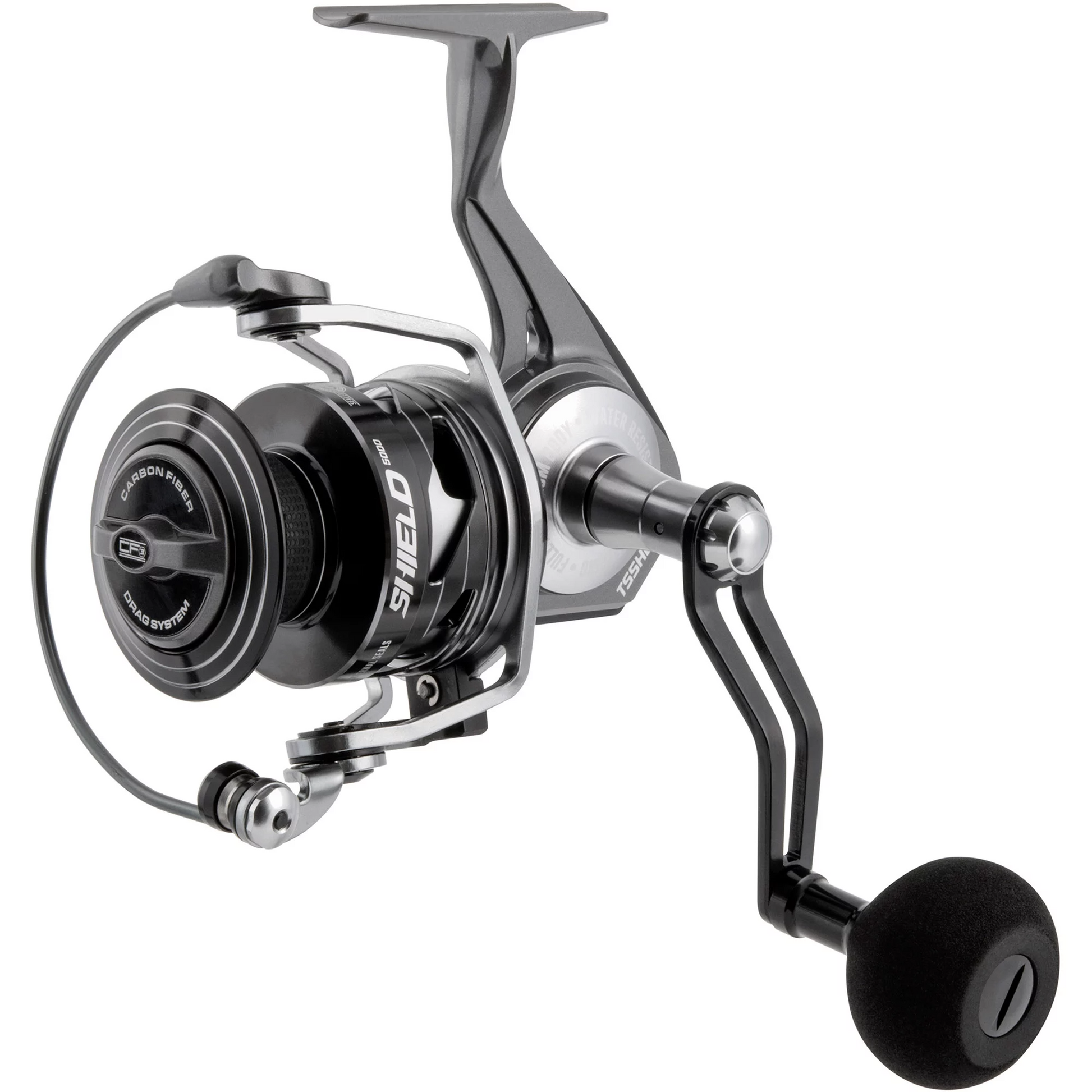The Tsunami Shield Series is salt waterproof spinning reels feature up to 13 internal seals in key, strategic locations to shield critical components from harmful saltwater intrusion. The internal seals, super smooth and strong CF3 carbon fiber drag system and 5 sealed stainless steel bearings are wrapped in a hybrid machined aluminum body combining protection, precision and toughness. The heavy-duty rotor brake controlled bail system and precision machined aluminum, braid-ready spool assure the best control of super braids cast after long cast.