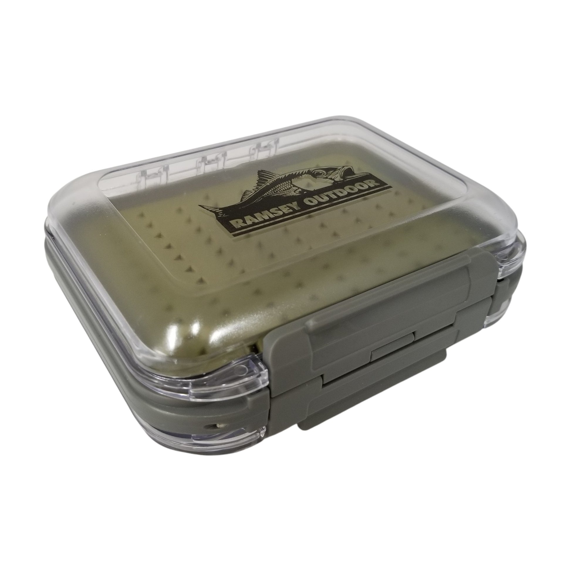 The New Phase Medium Silicon Double Sided Fly Box features our silicon liner for increased durability and scent free fly storage. Clarified ABS construction with stainless steel hinge pins. This box features our Ramsey Outdoor fish logo in the middle.