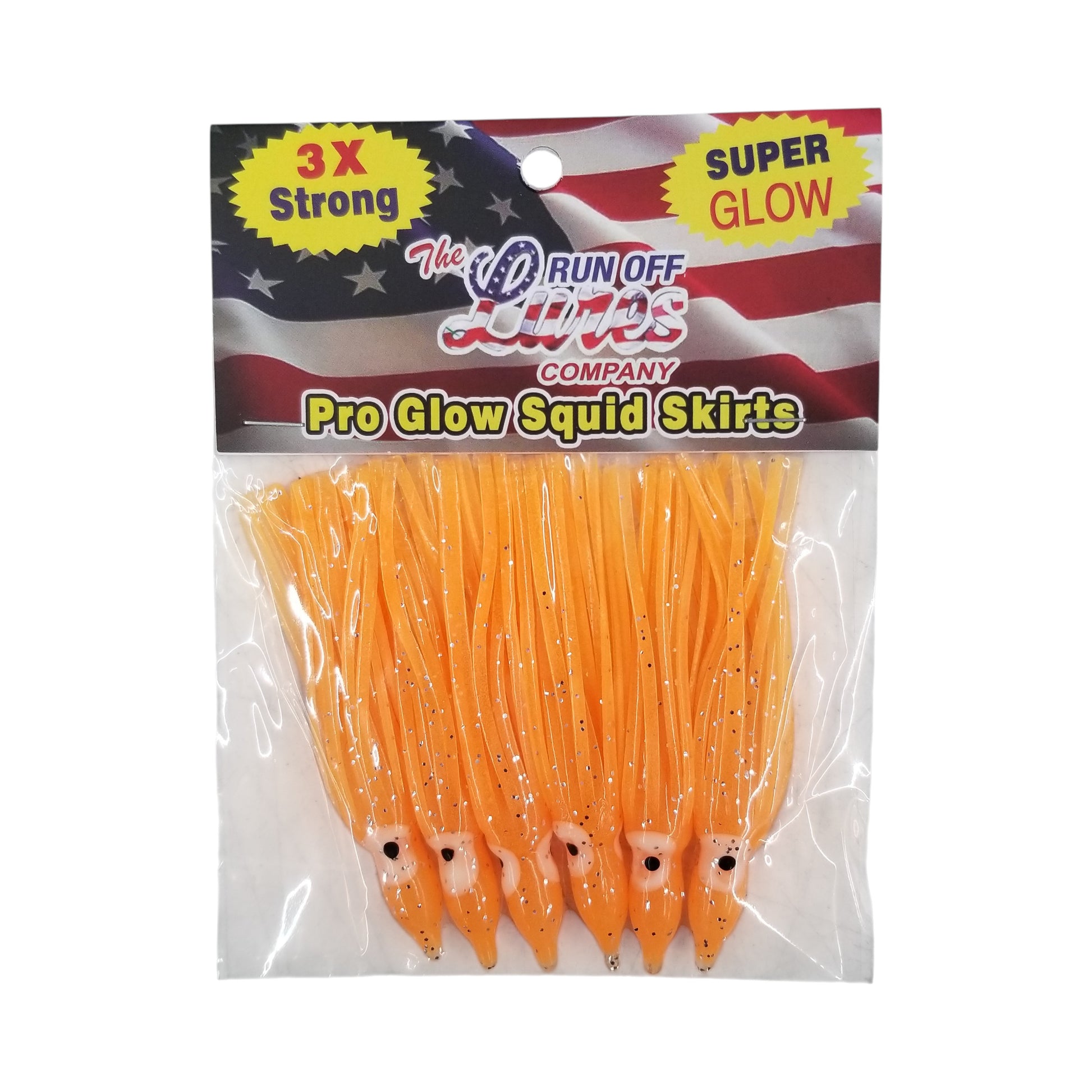 The Run Off Lures Small Pro Glow Squid Skirts are perfect for your next fishing rig! These squid skirts are three times stronger than the competition and every color glows! When you have one of these skirts in your hand you can clearly feel the difference between them and any other skirts on the market. They will last longer and you will catch more fish. Run Off Lures Pro Glow Squid Skirts are made in the USA!