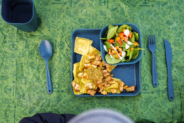 Coghlan's Solo Tableware kit allows you to dine in comfort and reduce your environmental footprint. Made of up to 50% wheat straw, this single-person camping tableware set is a great alternative to single-use paper and plastic dinnerware. It features a large plate, bowl, cutlery set, and cup contained in a mesh bag for easy transporting. BPA-free and dishwasher safe, this high-quality kit is easy to clean and built to last. It's the perfect item to bring when going on camping trips, canoe trips, or any solo adventure.