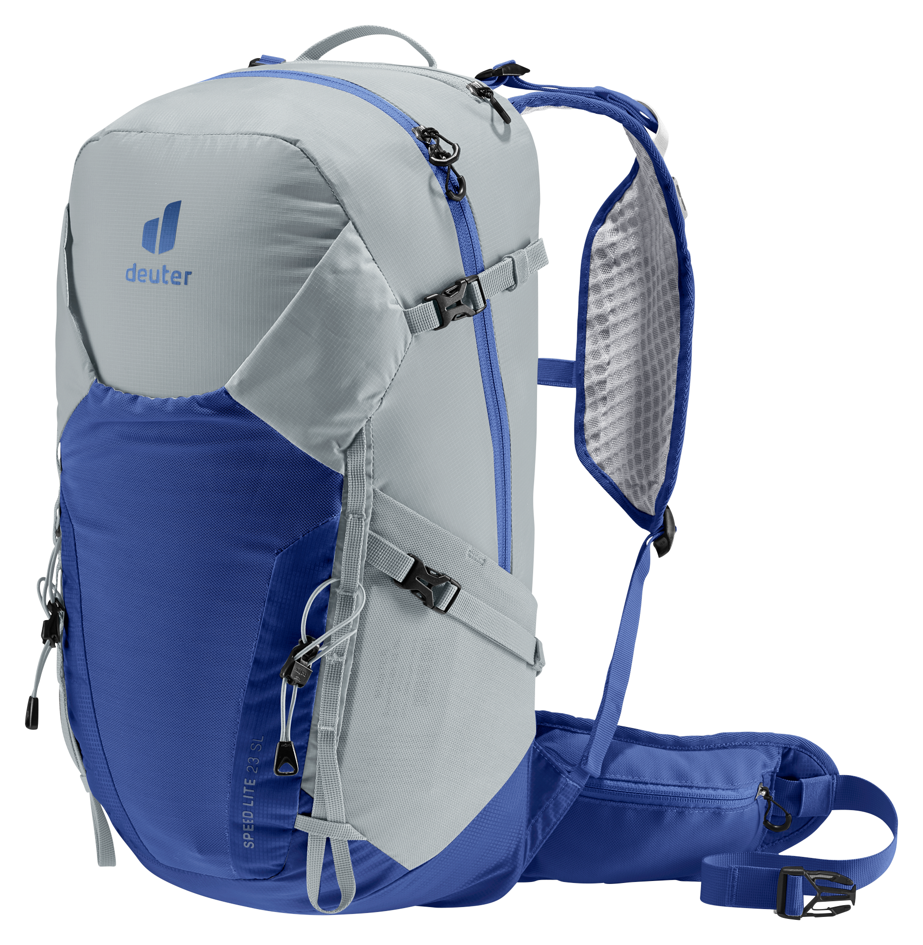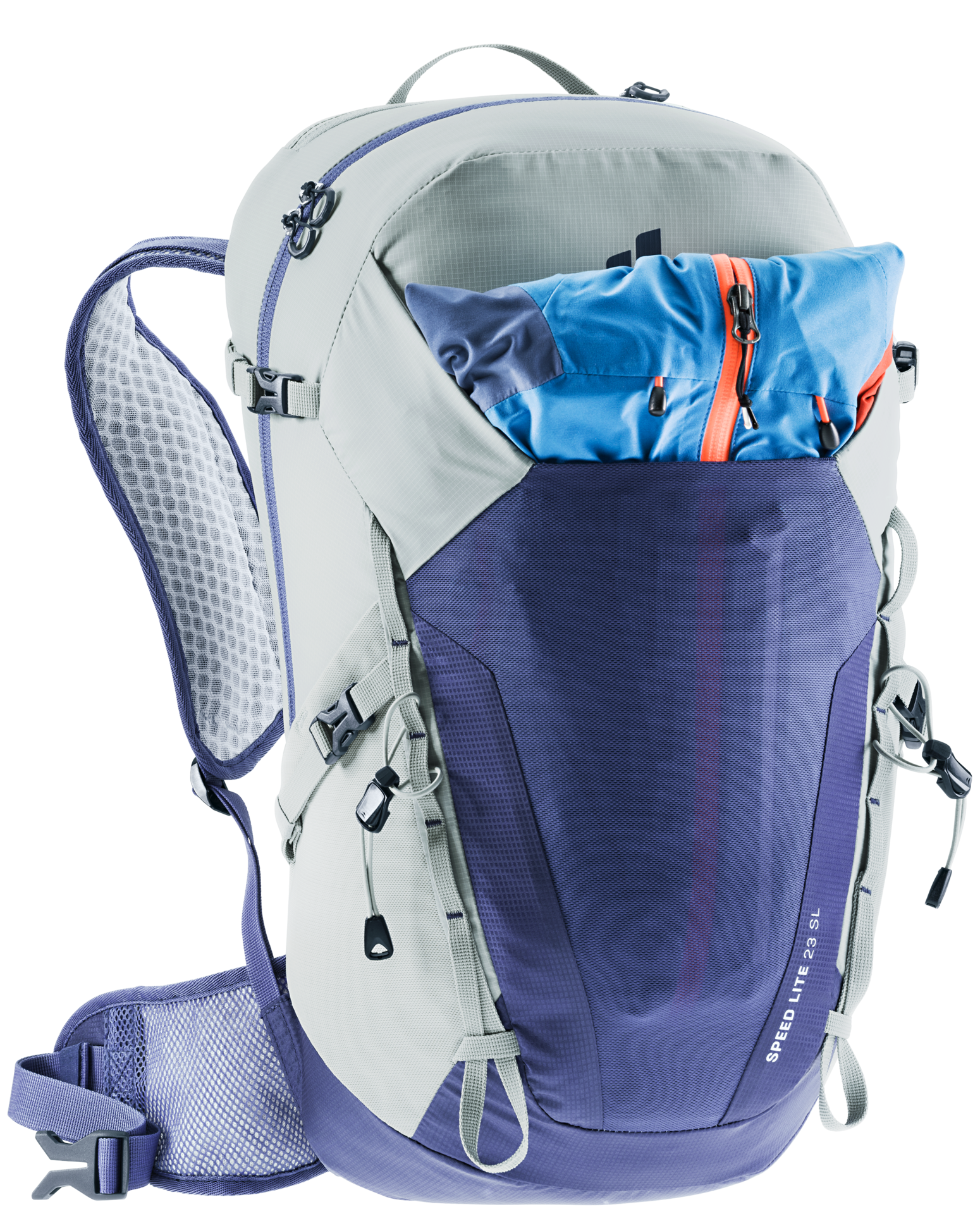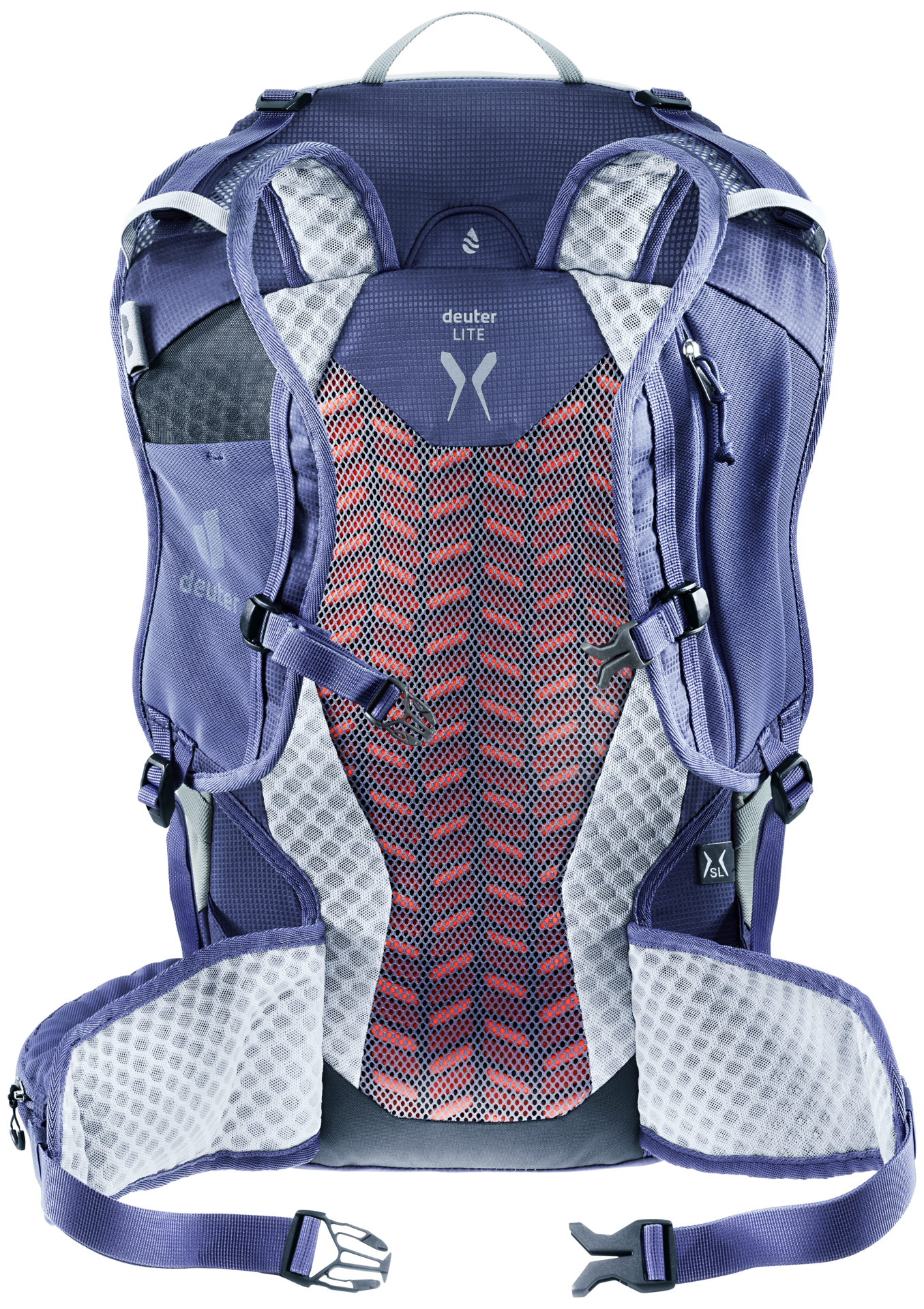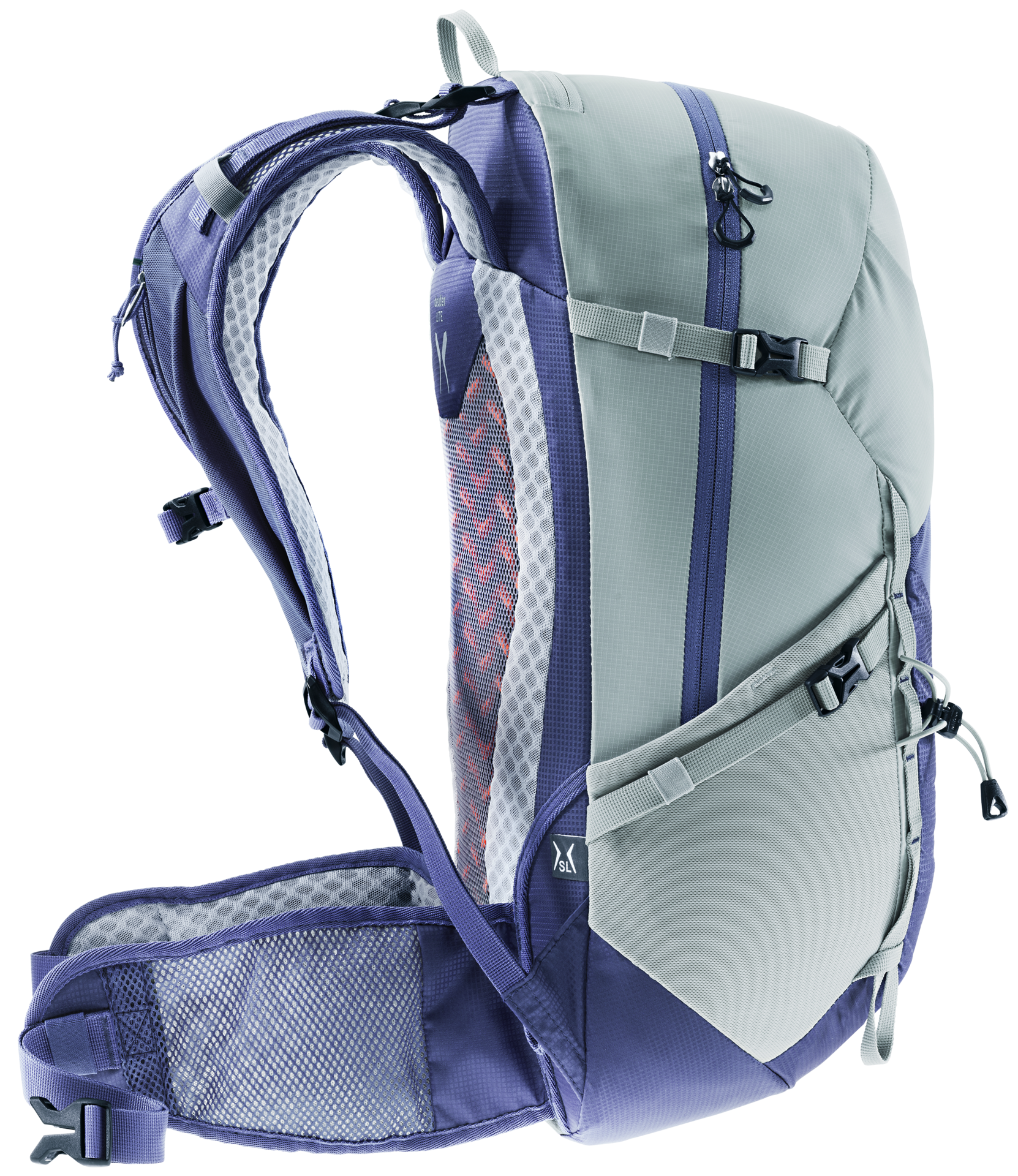 Speedy, light and sustainable thanks to deuter’s Lite back system, vest-style, perforated shoulder straps, supple hip fins, precision-adjustable sternum strap and 100% recycled, bluesign® certified body fabric. Designed for fast-paced hiking and trail running, side compression straps effectively reduce load wobble and enable full range of movement. While a pocket on the shoulder straps keeps everything that you need on the trail handy.