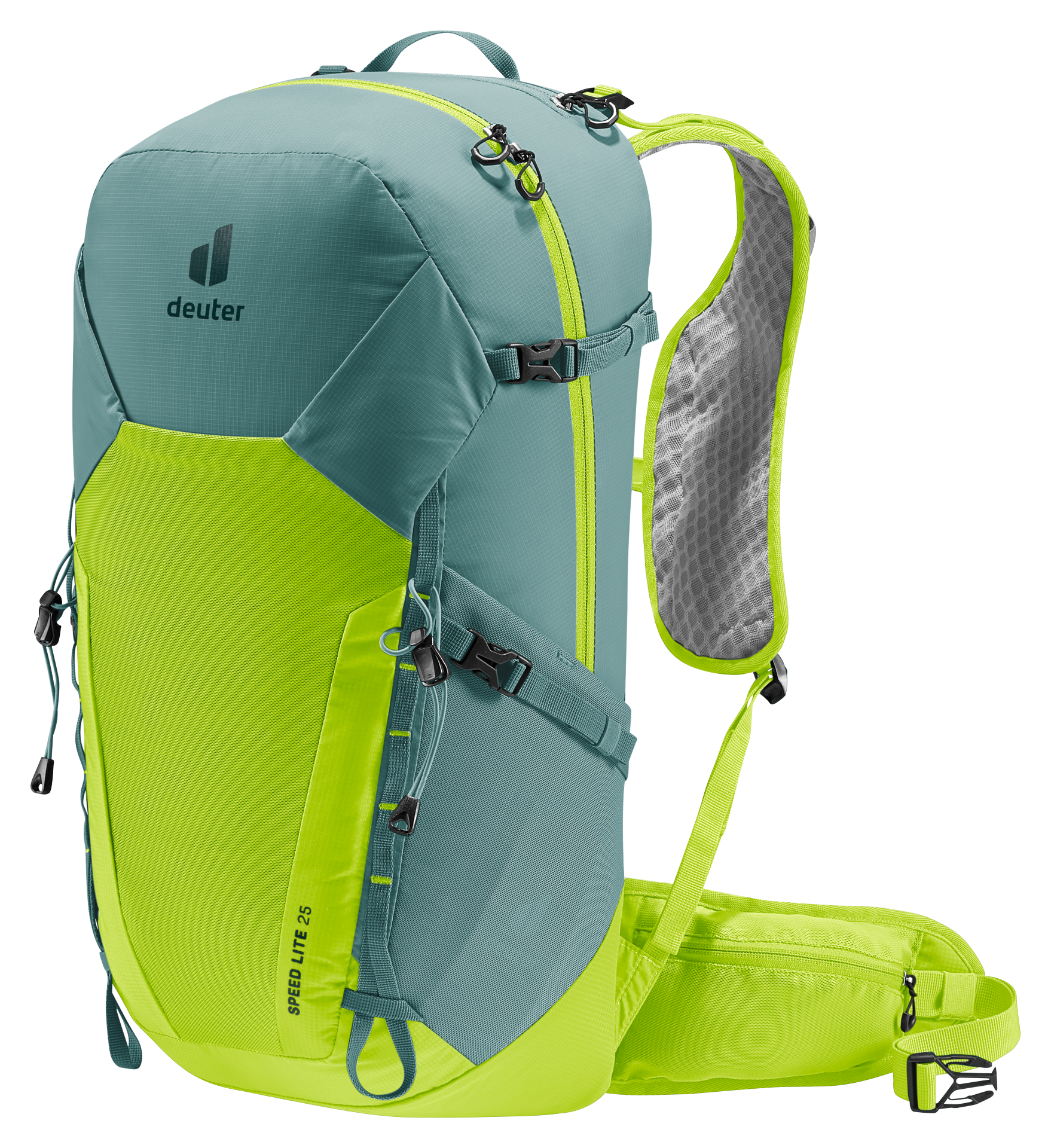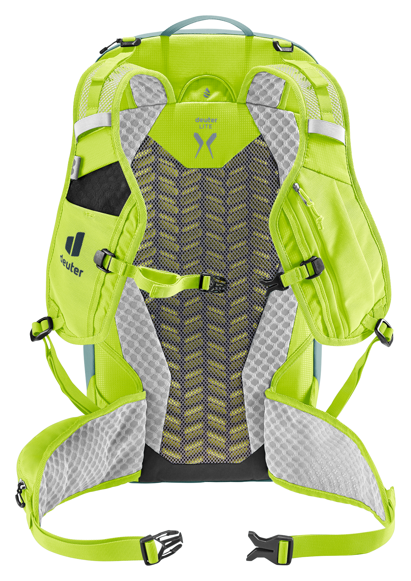 Speedy, light and sustainable thanks to deuter’s Lite back system, vest-style, perforated shoulder straps, supple hip fins, precision-adjustable sternum strap and 100% recycled, bluesign® certified body fabric. Designed for fast-paced hiking and trail running, side compression straps effectively reduce load wobble and enable full range of movement. While a pocket on the shoulder straps keeps everything that you need on the trail handy.