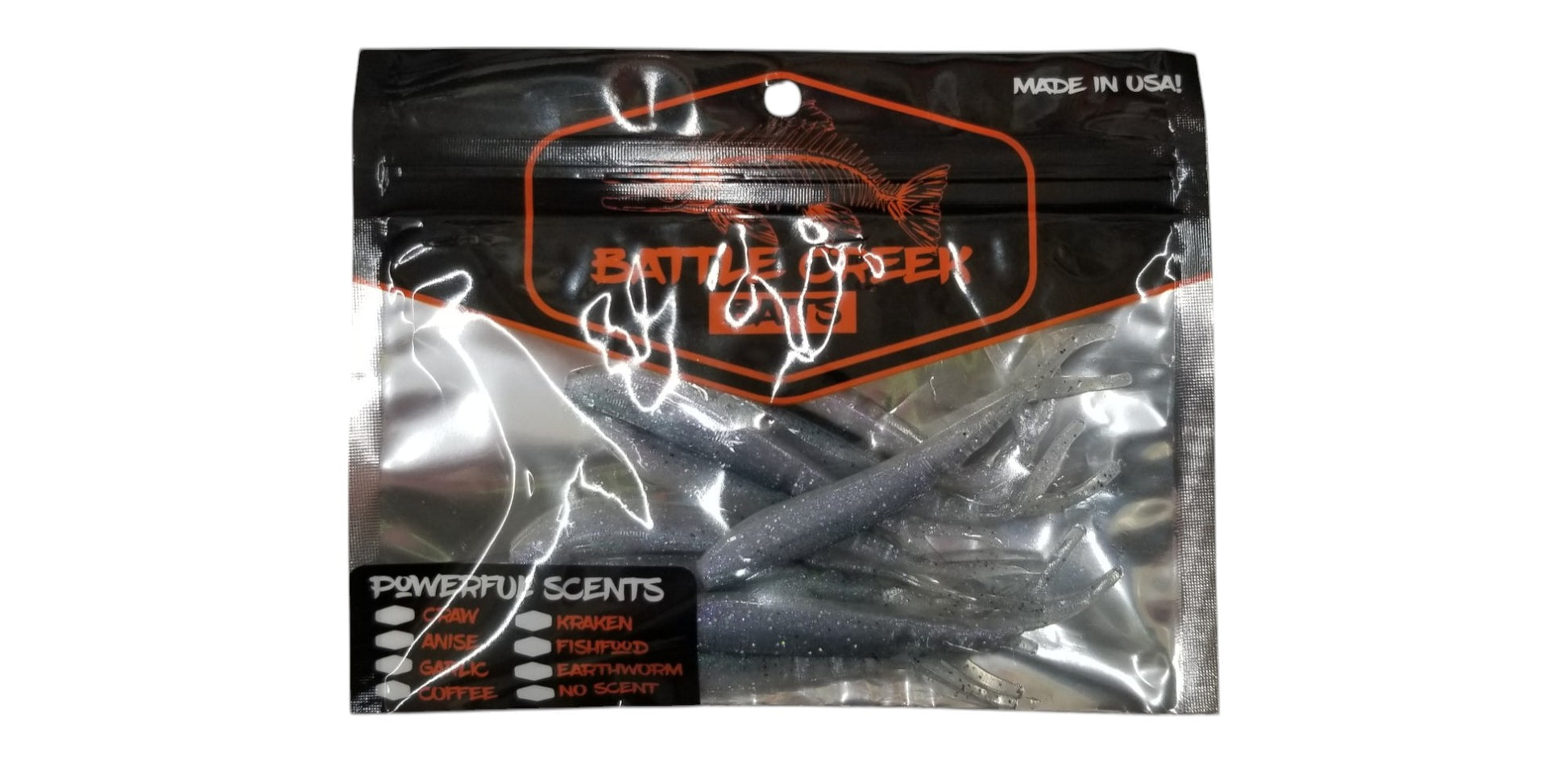 The Battle Creek Baits 3" Split Tail is perfect for panfish, trout, and micro fishing. They pair well with the Voodoo Custom Tackle 1/80 Micro Jig. This pack contains 10 baits.