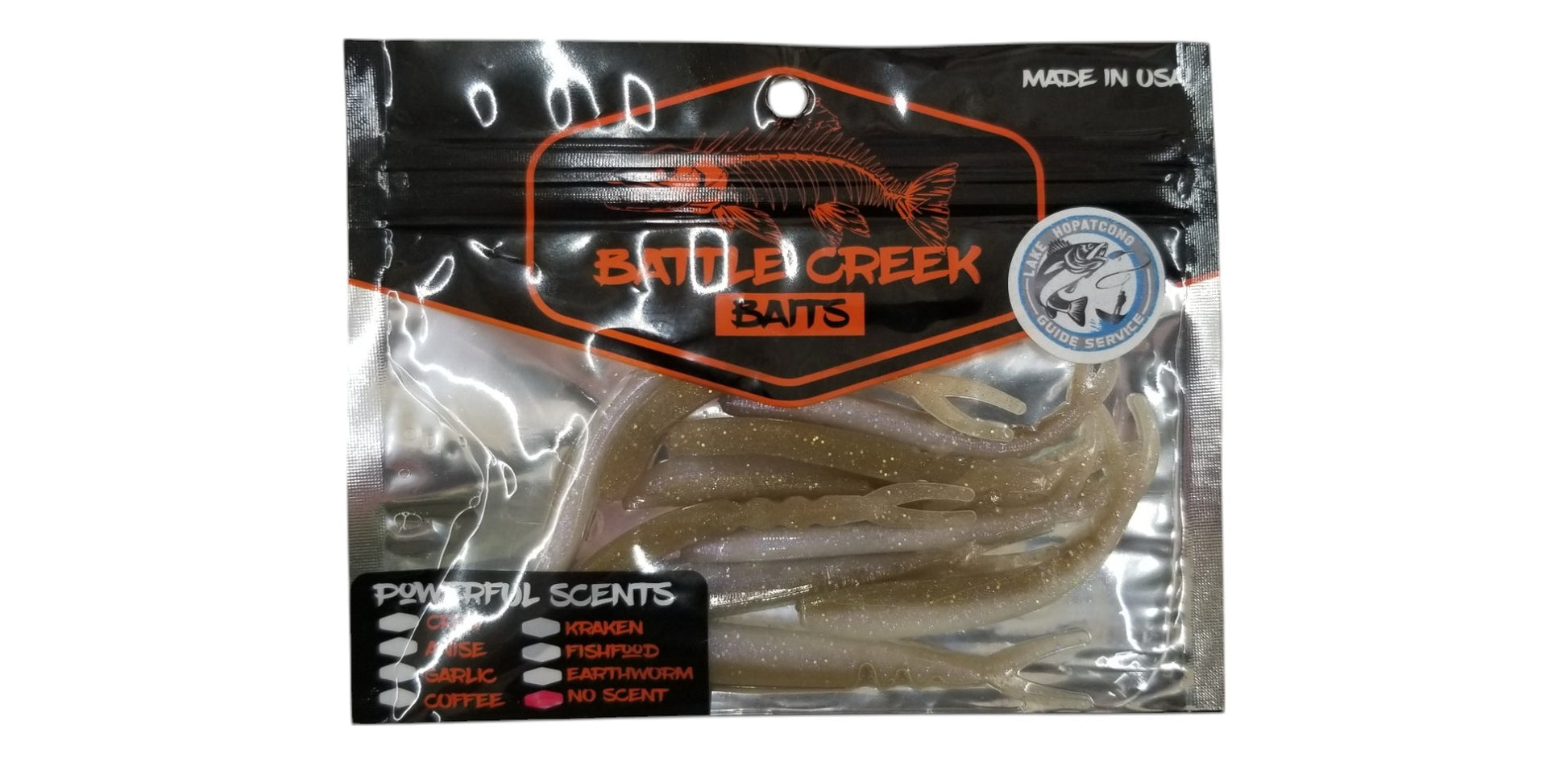 The Battle Creek Baits 3" Split Tail is perfect for panfish, trout, and micro fishing. They pair well with the Voodoo Custom Tackle 1/80 Micro Jig. This pack contains 10 baits.