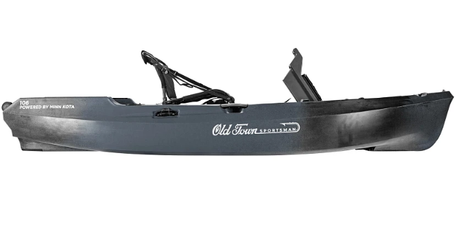 The Old Town Sportsman 106 Powered by Minn Kota motorized kayak is simple and intuitive, getting you on the fish faster in a compact, low-profile kayak you can car top.