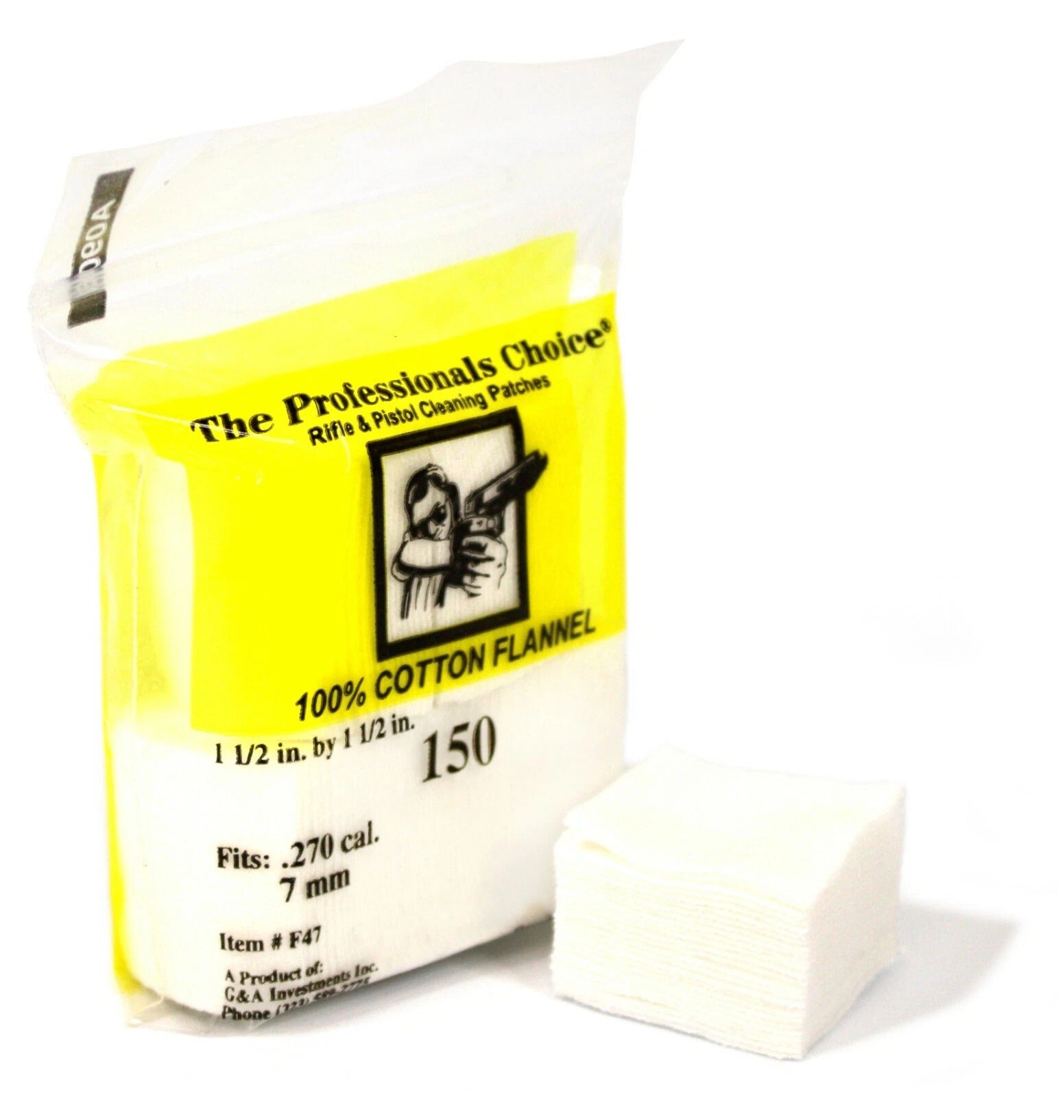 Keep your rifle clean and ready with the Professionals Choice Square Flannel Patch, designed for .270 caliber and 7mm firearms. Each patch is cut to 1.5 inches by 1.5 inches and made from 100% cotton flannel, providing a soft, absorbent surface that won't scratch or damage your barrel. Whether you're applying solvent, removing fouling, or oiling the bore, these patches deliver consistent, reliable performance. Packaged in a 150-count resealable bag, they’re an essential addition to any rifle maintenance kit.
