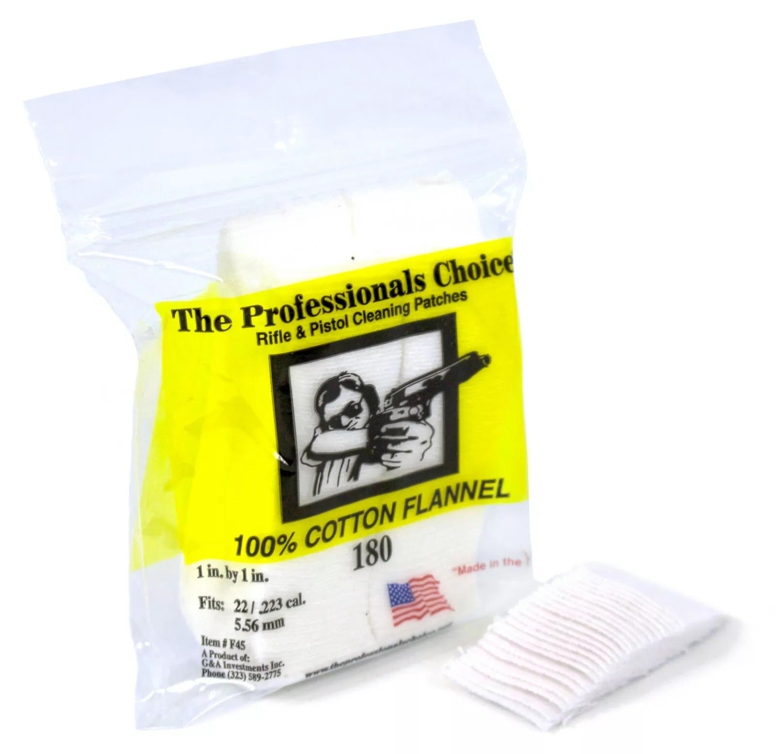 Clean your small-bore rifles with precision using the Professionals Choice Square Flannel Patch, specially sized for .22 caliber, .223 Remington, and 5.56mm firearms. Each patch measures 1 inch by 1 inch and is made from 100% cotton flannel, providing a soft, absorbent surface ideal for applying solvents, removing fouling, and oiling your barrel. These professional-grade patches come in a 180-count resealable bag, offering dependable performance and easy storage for everyday cleaning needs.