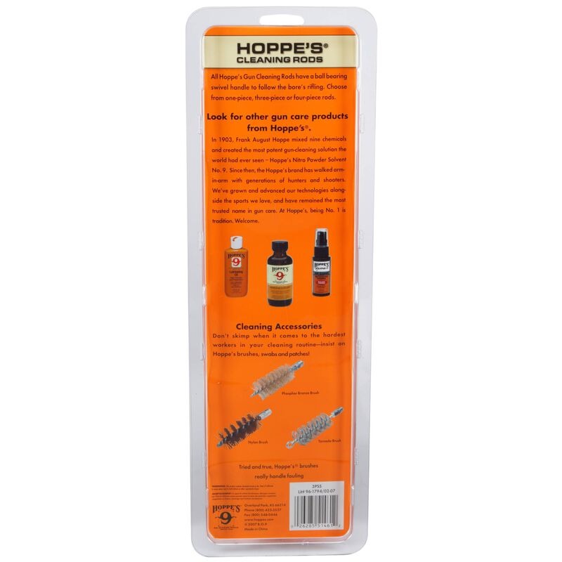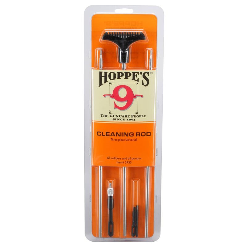 Hoppe's Bench Rest stainless steel cleaning rods are constructed of high-grade stainless steel. Each cleaning rod has a ball bearing swivel handle to easily follow the bore's rifling while cleaning. The three-piece cleaning rod can be used on pistols, rifles and shotguns. For .22 caliber and larger. Each cleaning rod comes with slotted ends and a shotgun adapter.