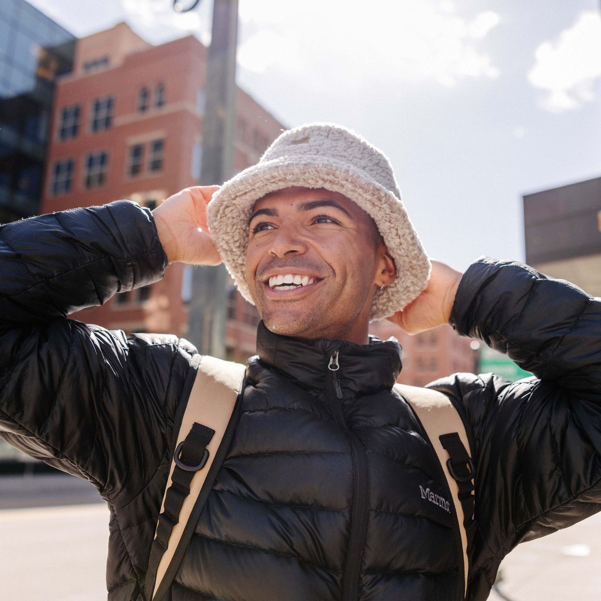 Here to make a statement. An on-trend silhouette made of a 100% recycled, high-pile fabric, it’s a classic design with a fabulous, fluffy, adjustable twist.
