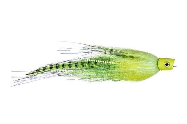 The Montana Fly Company Strolis' Chuggernaut Popper features a size #1/0 hook and is a great choice for pike, musky, or predatory fish. These flies are hand-crafted with high quality materials, making them super durable.
