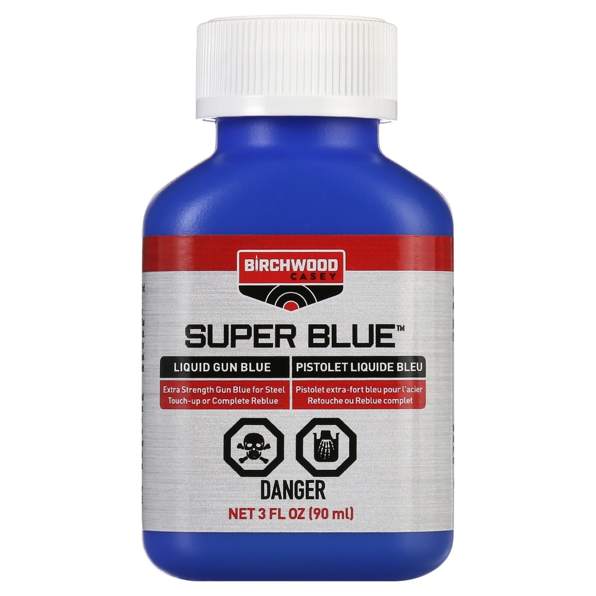 A double-strength blueing solution designed for blueing highly polished steel parts and hardened steels containing nickel and chrome alloys (except stainless). Super Blue Extra Strength Gun Blue is the blackest blue.