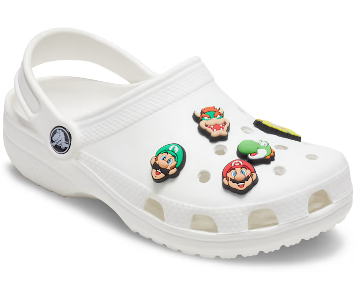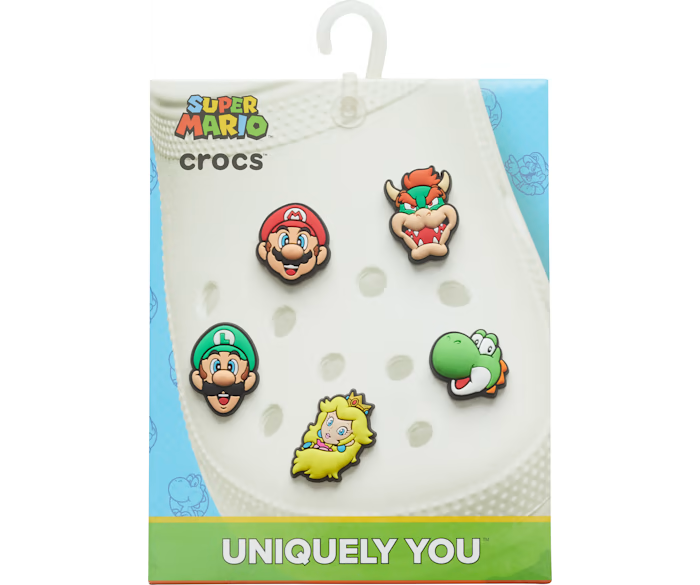Take the Mushroom Kingdom by storm with this lovable set of Jibbitz charms from Crocs! Includes the Super Mario, Luigi, Princess Peach, Bowser and Yoshi Jibbitz charms.