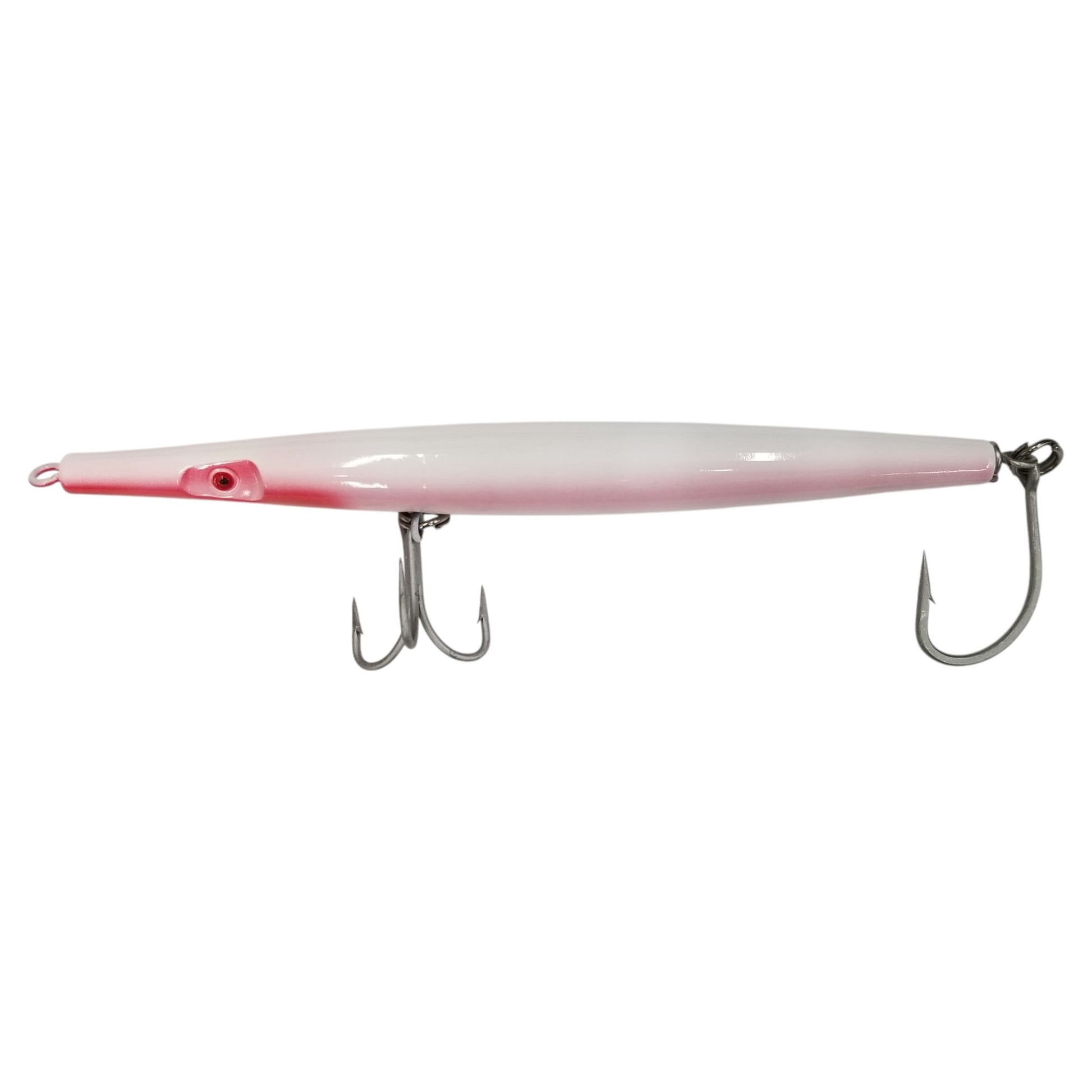 The Super Strike 3 oz. Super "N" Fish Heavy Needlefish is 7.25" in length and features a custom Rez-N-Painted, acrylic clear coated finish. Designed for surfcasting, boatcasting, and trolling, this plug is balanced and designed to give the perfect casting distance. When the Needlefish hits the water, pull the rod back and start to retrieve to take the slack line in. Retrieve at a speed that you feel the plug is working against the rod tip. This is a great choice when targeting striped bass, bluefish, weakfish, snook, tarpon, and many other species. Depending on the model, it will have a VMC hook or Mustad siwash hook. Featuring stainless through-wire swivel construction, stainless heavy duty Rasco split rings, and VMC treble hooks, these plugs are guaranteed to produce results.