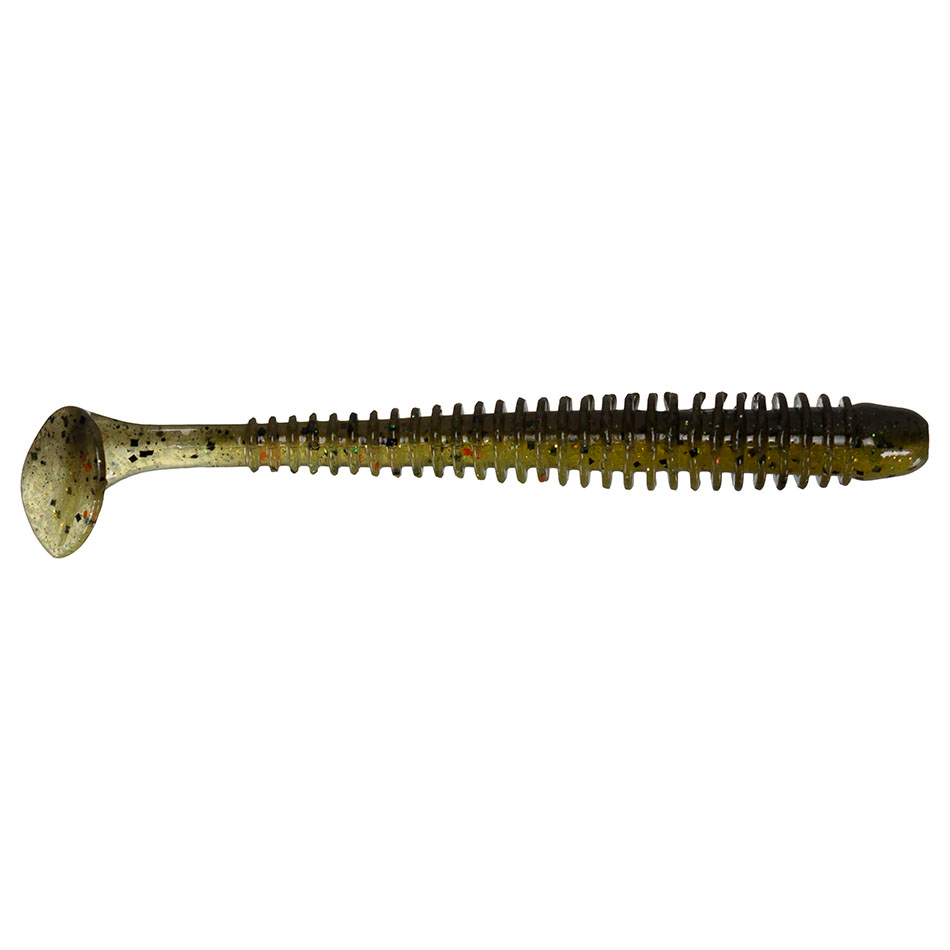 The Keitech Swing Impact is a proven Tournament winner. These versatile swimbaits come in six sizes to match any fishing conditions. Keitech's original two-tone color injection process uses different types of salted plastics to achieve better balance and action. The Swing Impact arguably has the finest swimming action of any comparable swimbait in existence. The Superior design incorporates a fish attracting wobble and a tight swimming action that drive predators wild. The Swing Impact is truly versatile and can be rigged and fished multiple ways. The Jig Head Rig is most popular. Fish it on the straight retrieve or drag it slowly on the bottom. Adjust your weight and retrieve speed to target almost any depth. This keeps you in the "Strike Zone” and allows you to fish a moving bait on deep spots which Crankbaits can't reach.