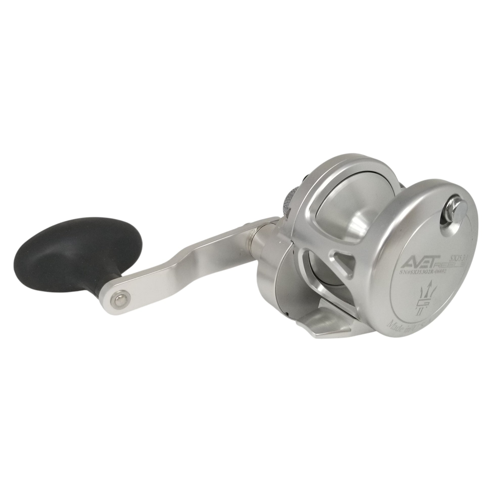 The Avet Reels SXJ5.3 G2 Single Speed Right Casting Reel without Glide Plate features precision machined 6061 T-6 marine grade aluminum and stainless steel components for maximum durability. It has been anodized for superior corrosion resistance and the anodization also provides a beautiful finish. Featuring a powerful lever drag system and precision machined stainless steel gears, this reel is equipped to handle the toughest fish. The SILENT dog and gear anti-reverse system has been re-designed with more engagement teeth to reduce handle back-play while the large soft touch handle knob provides extreme comfort.