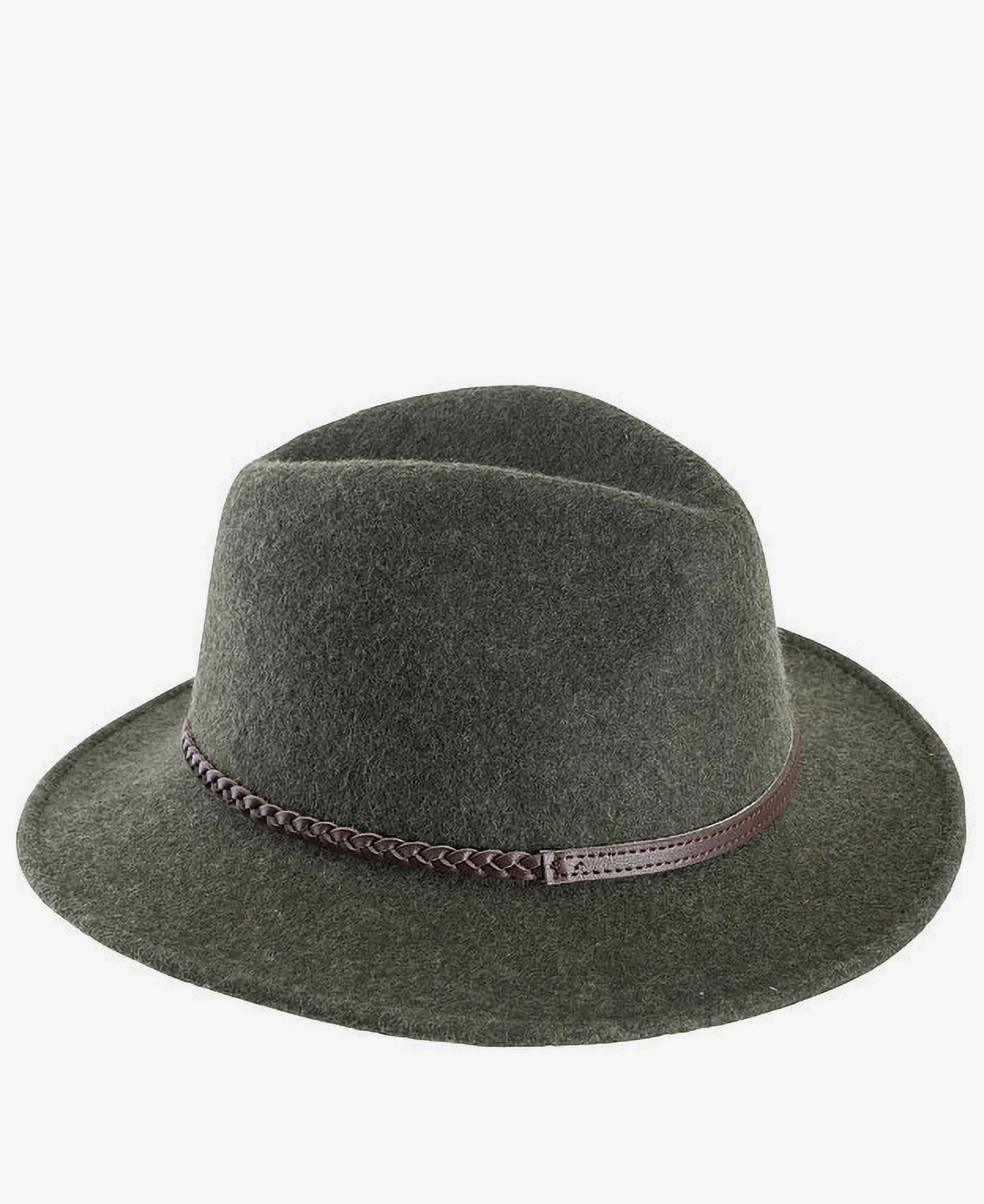 Created with a blocked-felt construction, this traditional fedora has a sturdy shape and is trimmed with a braided real-leather hatband. This pure-wool hat is finished with a cotton-tattersall had pad for breathable comfort.