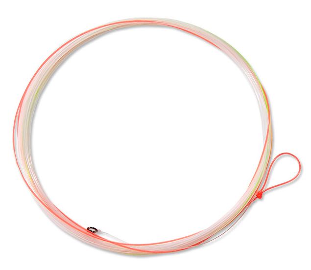 Innovative 13', 2X multicolor knotless leader uses color to allow the angler to see and follow the leader when nymphing. 12" of bright orange butt section, with a perfection loop for easy connection to fly line, changes to an opaque white.