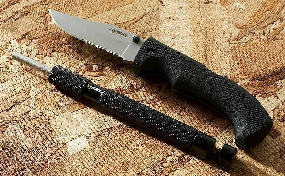 The Lansky Tactical Sharpening Rod answers the call for a military-tough knife sharpening tool that combines the speed of Lansky's proven tungsten carbide sharpeners with the compact convenience of our retractable diamond rod. Keep it with you at all times for fast blade maintenance as the need arises. The tungsten carbide is used for quickly setting an edge and restoring a severely damaged or dull blade. The diamond rod will then refine the edge. For regular maintenance, the diamond rod alone is sufficient.