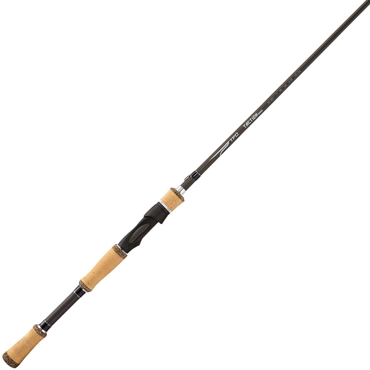 The Temple Fork Outfitters TB S 703-1 Taction Bass 7'0" Medium Light Spinning Rod is designed and manufactured to deliver uncompromising performance and proven durability across a wide range of fishing situations, and when combined with TFO's full lifetime warranty against defects, the rods are the perfect choice for anglers wanting to ensure their fishing success and enjoyment. Taction Bass blanks utilize intermediate modulus carbon fiber, ensuring strength and responsiveness without sacrificing sensitivity. The finished rods feature a timeless non-glare charcoal finish, adding an elegant touch while minimizing unwanted reflections. Equipped with Seaguide Hi-Grade marine grade stainless tangle-free guides and LS inserts, the Taction Bass ensures smooth line flow and optimal casting performance. The premium cork grips, featuring burl appointments, offer superior comfort and the down locking Fuji feel through reel seats provide a comfortable and secure grip, complemented by hidden threads for a sleek appearance. Other features include a clip-style hook keeper positioned opposite the reel as well as TFO's proprietary power color coding system, allowing you to quickly select the perfect tool for your preferred fishing technique.