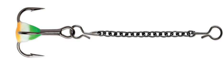 The VMC® Treble Dropper Chain on your favorite spoons or lures for increased action and attraction to turn those sniffers into biters! Rigged with Black Nickel dropper chain and glow resin bead. Glow resin bead stays charged for up to 15 minutes.