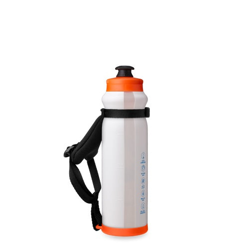 Our Tempo Pro handheld sits securely in your hand. The unique sandal-cut strap design rides comfortably, allows for more airflow, minimizes irritation, and wraps around your wrist to do the gripping for you. The Tempo Bottle is ergonomic for easy squeezing, slimmed down for a comfortable hold, and leakproof. Easily remove the strap for cleaning in the dishwasher.