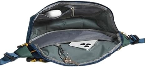 - Main compartment holds larger items such as a water bottle, phone, keys and wallet