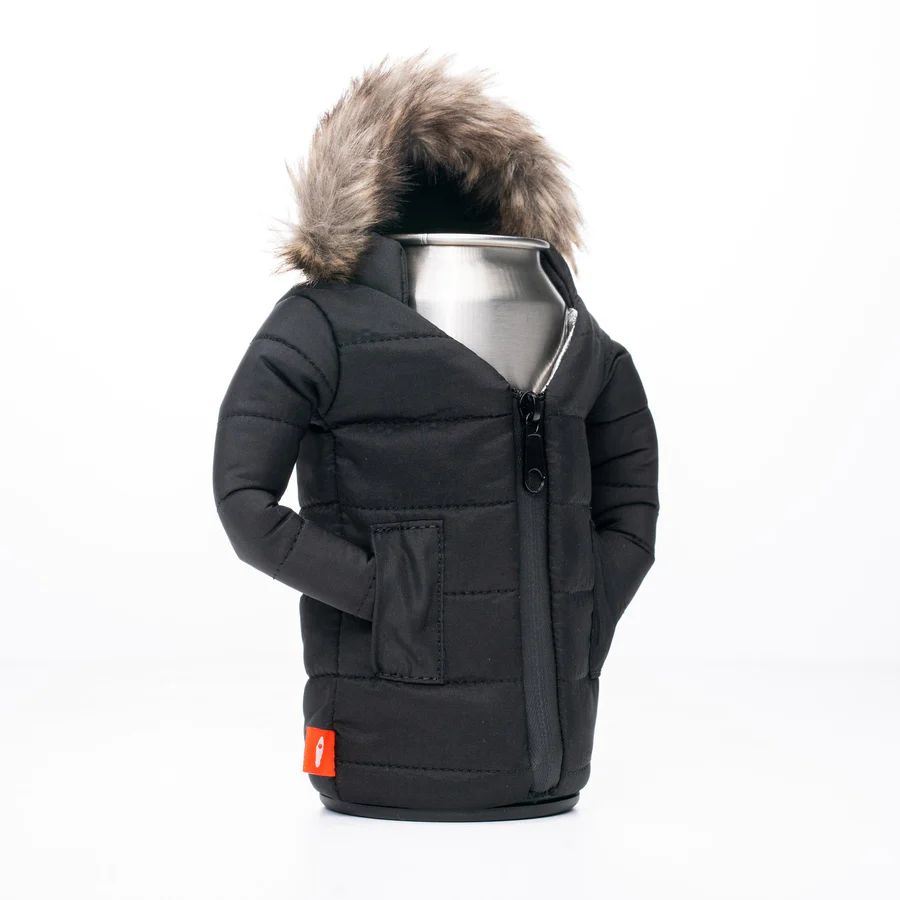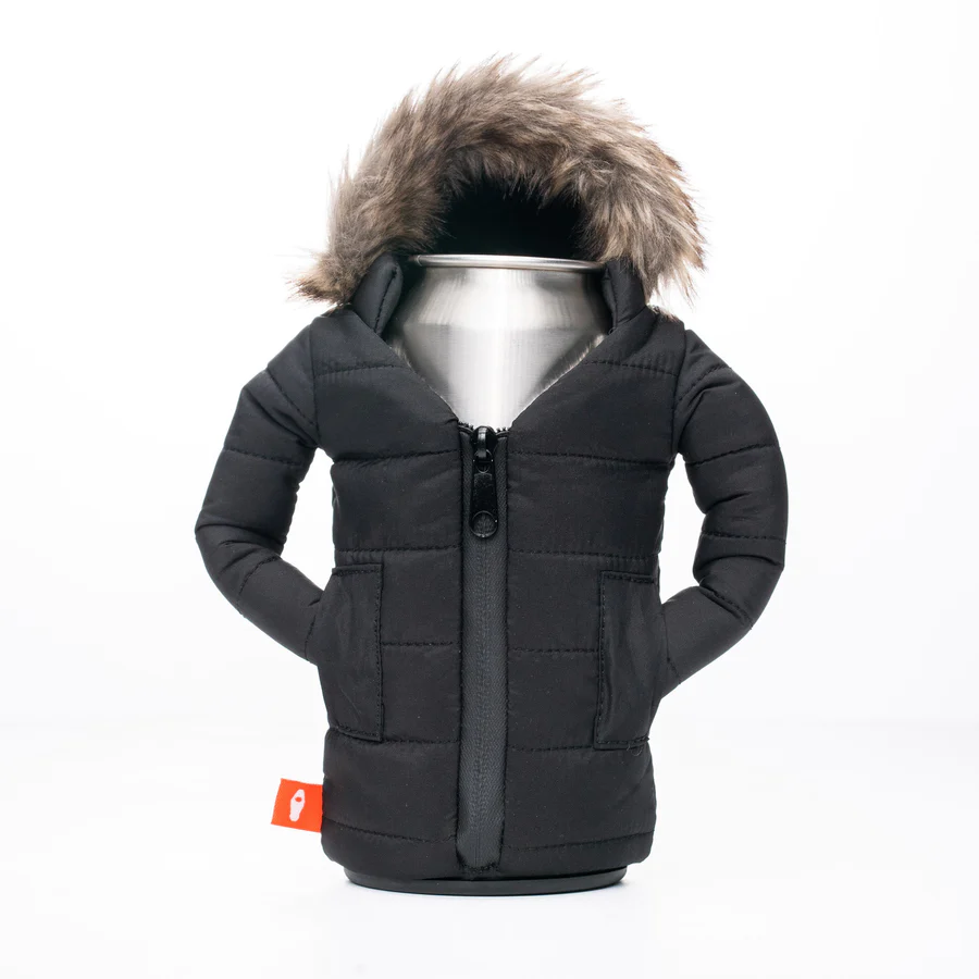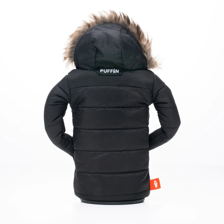 Add some flare to your winter drinkwear wardrobe with a cozy Puffin Parka. The faux fur-lined hood brings a touch of glamour to a timeless classic. This diva will keep your drink cold and looking fabulous.