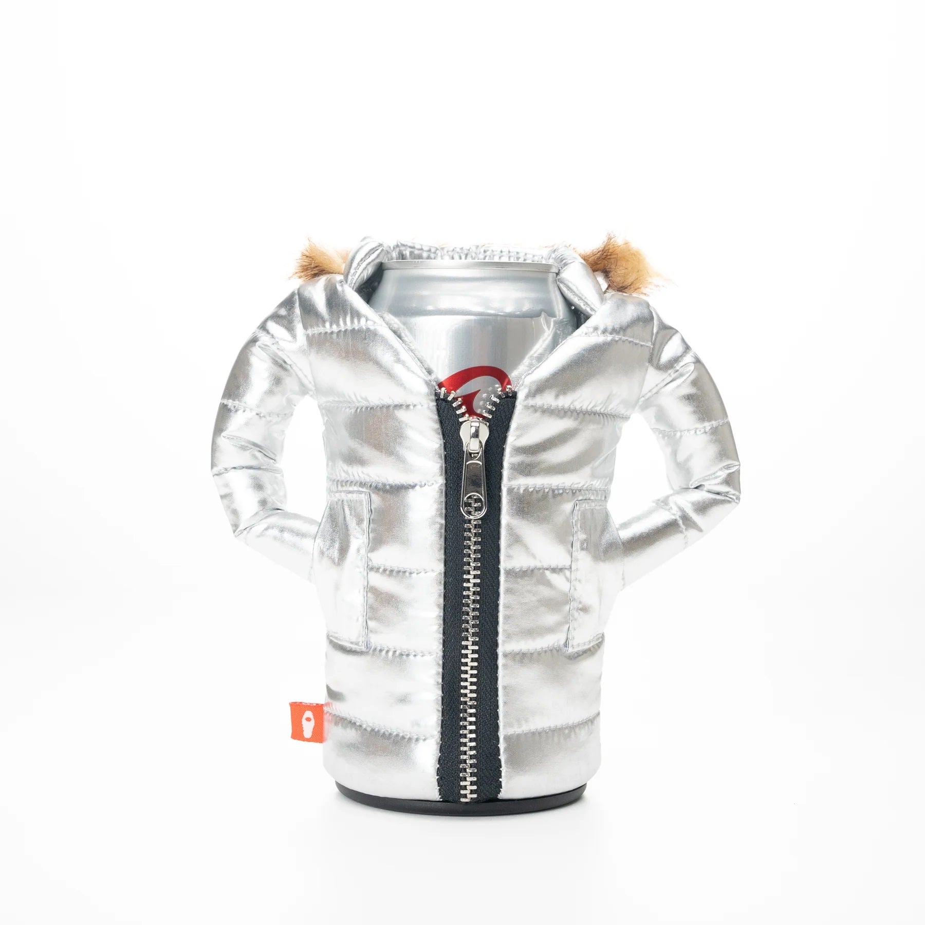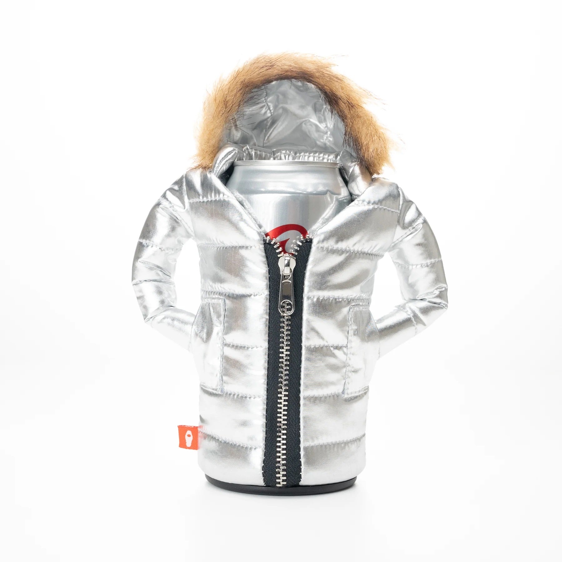 Add some flare to your winter drinkwear wardrobe with a cozy Puffin Parka cooler for your bottles and tall cans. The faux fur-lined hood brings a touch of glamour to a timeless classic. This diva will keep your drink cold and looking fabulous.