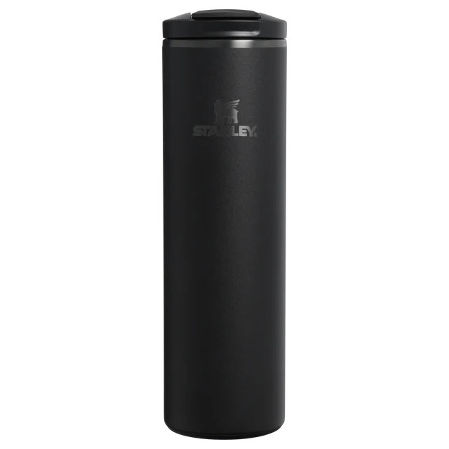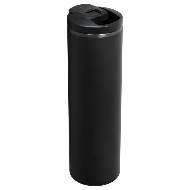 The 20-ounce Transit Flip Top Mug has premium AeroLight™ technology that makes it significantly lighter than standard stainless steel. Featherweight spun-steel with vacuum insulation keeps your drink at the right temperature for hours. Matching soft silicone at the lid tab and footpad makes opening, closing and set downs quieter.