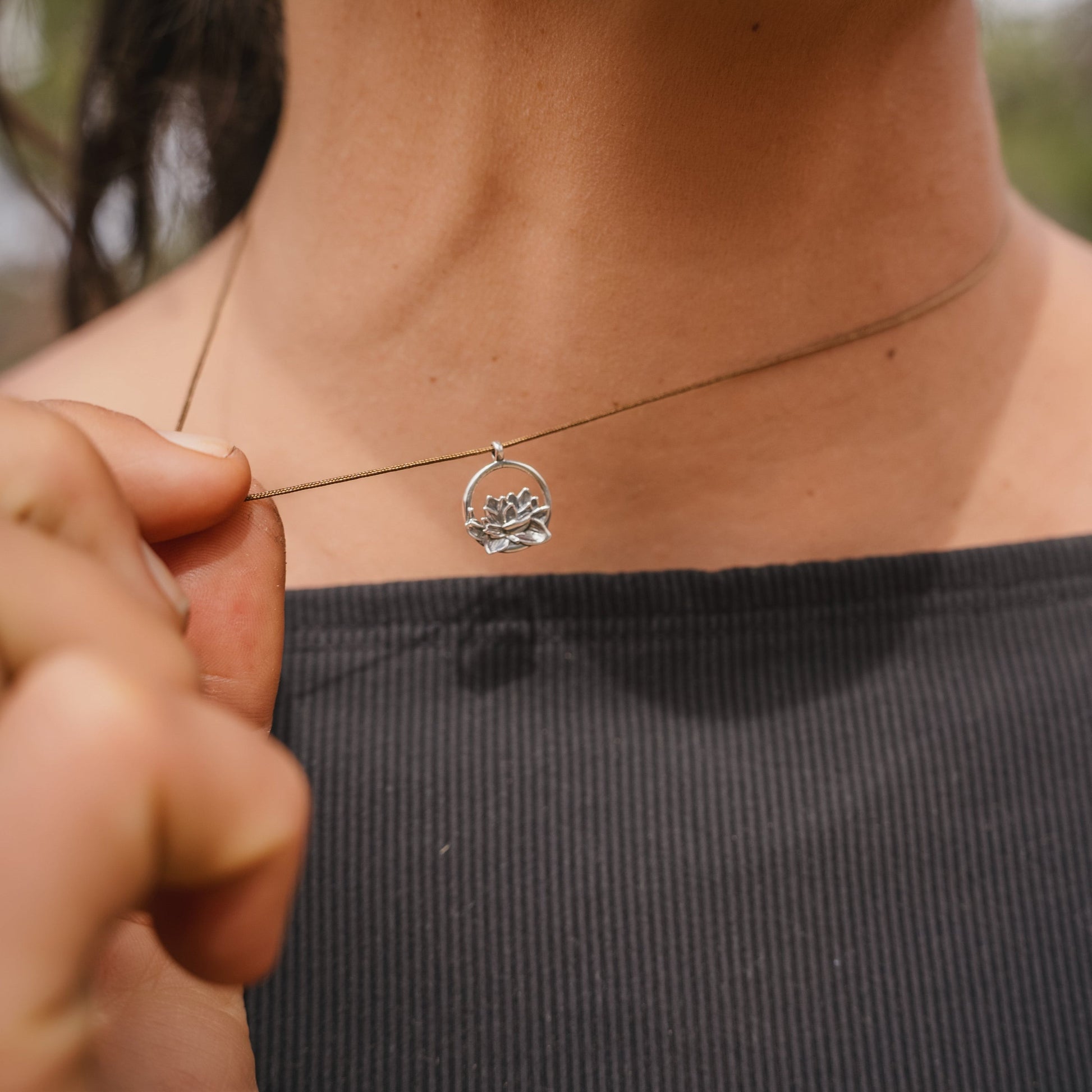 Tiny Charm Necklace - Open Lotus 16"