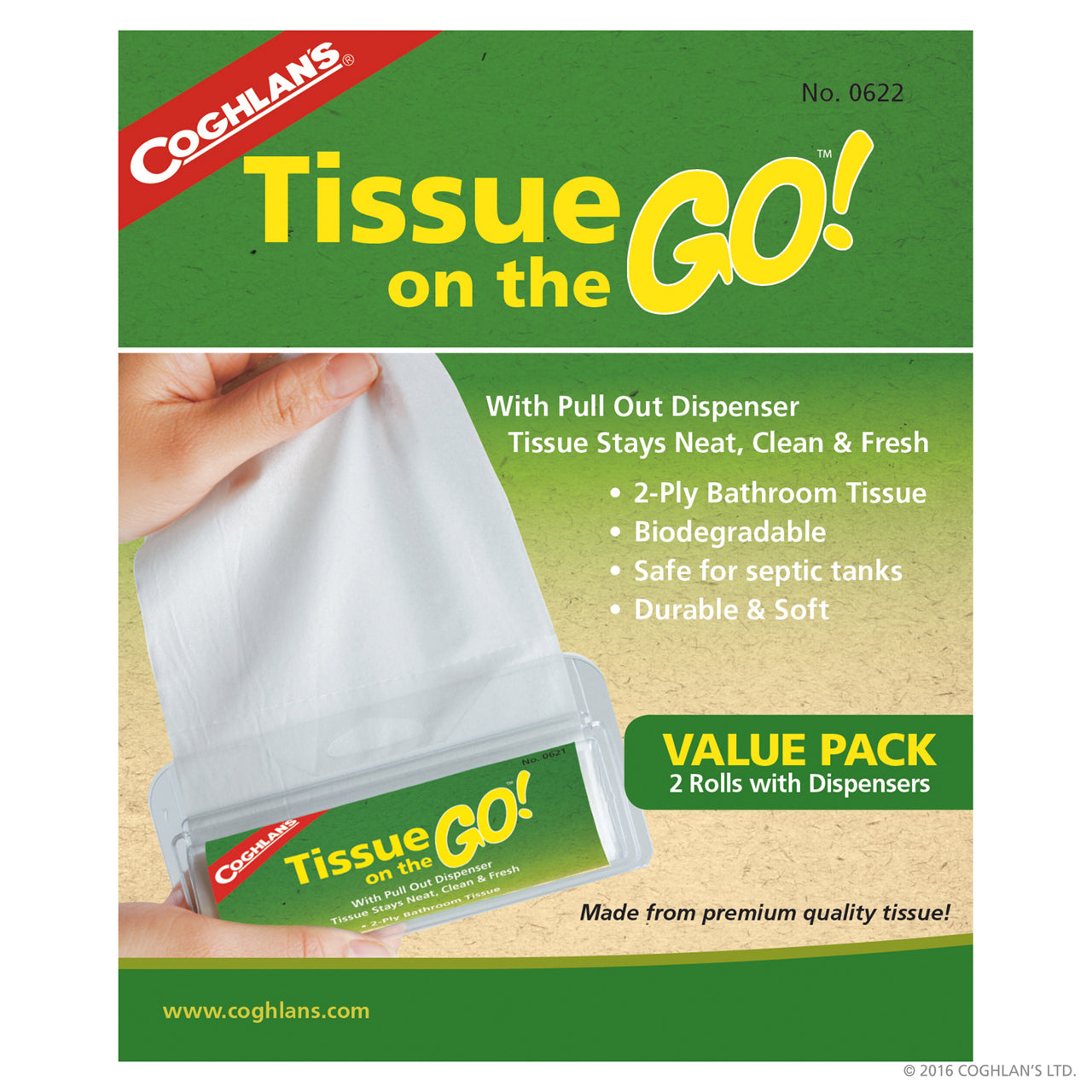 Coghlan's Tissue on the Go™ has a unique pull out dispenser that keeps tissues neat, clean, and dry. Fits easilt in a pocket, pack, or purse. 2 per package.