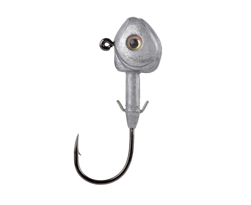 The Strike King Tour Grade Spotlight Head Jig Head in 1/8 oz. features a 4-pronged lure keeper which is designed to expertly hold onto various soft plastics without sacrificing the action or integrity of the bait. The Spotlight Head is ideal for forward facing sonar and features a 90-degree line tie for remaining perfectly horizontal in the water column to deliver an ultra-realistic presentation. It also has a strong, medium wire hook to keep fish on. This pack contains 3 jig heads.