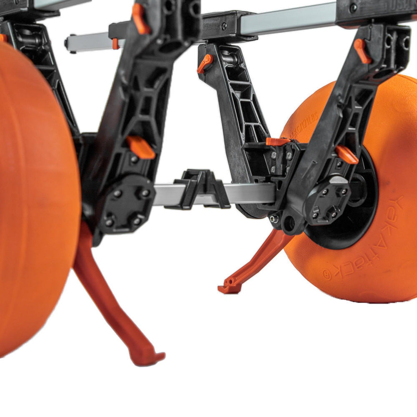 Wheels: Included are two air-filled balloon tires mounted on an injection molded two-piece wheel. The air-filled tires are optimized for various soft surfaces including sand and mud, and yes, they are YakAttack Orange. The wheels feature sealed hubs to keep out sand and grit. Like the BeadLoc wheels, they easily snap in place and are removed by a push of a button, and are interchangeable.