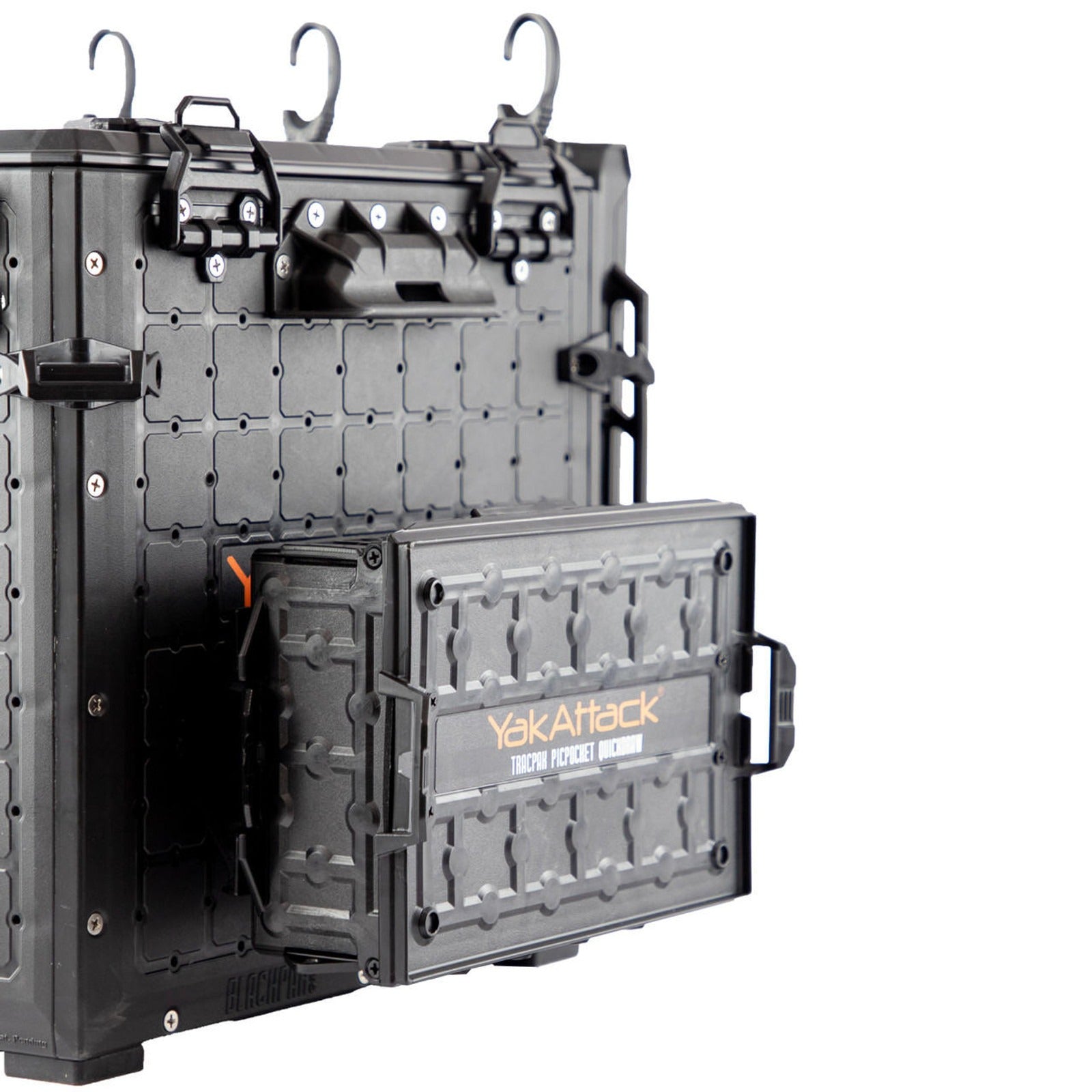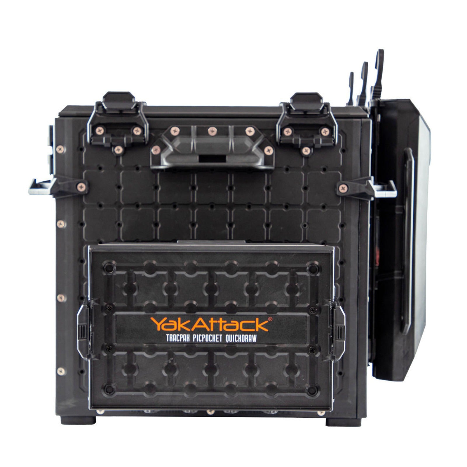 The YakAttack TracPak with PicPocket QuickDraw and Track Mount is a variation of the TracPak Stackable Storage Box combined with the 7.5" GridLoc PicPocket. When combined these products create an easy access storage option with a spring-loaded lid for anything from tools to tackle. The interior storage space is 7" wide x 2.25" deep. When the TracPak latch is opened, the lid pops out at a 30° angle, fully exposing the PicPocket. This works exceptionally well when the TrackPak is mounted on a vertical surface like the side of the BlackPak Pro but can also be mounted horizontally on a GearTrac. Includes the TracPak Quick Release Base and the necessary hardware to mount the TracPak to GearTrac or on the BlackPak Pro.
