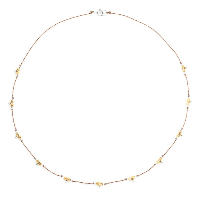 The best little layering necklace in the world! 24k gold vermeil and sterling silver accents join together to make a lovely little path around your neck. The mixed metals make this a great choice for everyone and every outfit; combines beautifully with many other Bronwen pieces. This is necklace is strong, delicate and just the right amount of fancy for everyday.