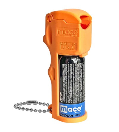 Tear gas enhanced Mace pepper spray, ideal for self defense. With a 10ft spray range, this pocket sized protection is perfect to keep handy for any adventure! Made in the USA.