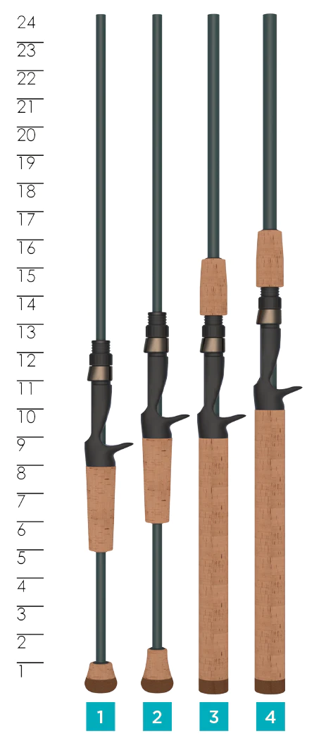 MODEL | LGTH. | PWR. | ACTION | LINE WT. (LB.) | LURE WT. (OZ.) | PCS. | HANDLE |