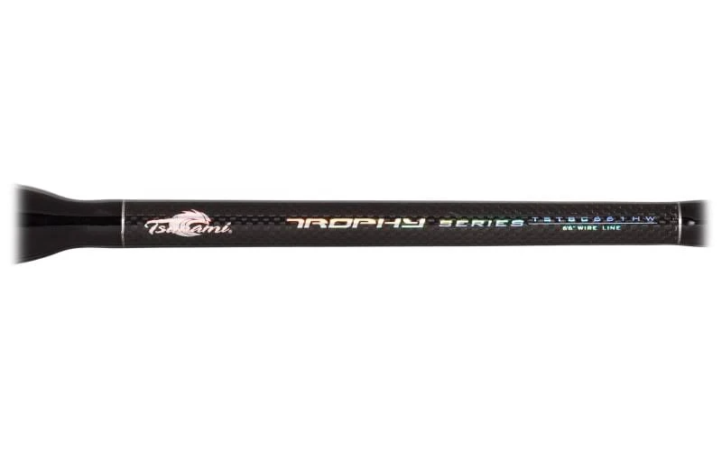 Premium quality construction, components and performance are all precision designed into the Tsunami Trophy Series of rods are produced exclusively by Bimini Bay Outfitters Performance Products. Tough unidirectional graphite blanks deliver increased sensitivity, toughness, power and strength to overcome trophy size gamefish. Light weight and strength mean less angler fatigue while fighting the biggest fish with better energy transfer and more force directed to the fish. The high modulus graphite aids in refining each rod action to assure the best of energy storage and transfer on every cast or during the longest and toughest fight.