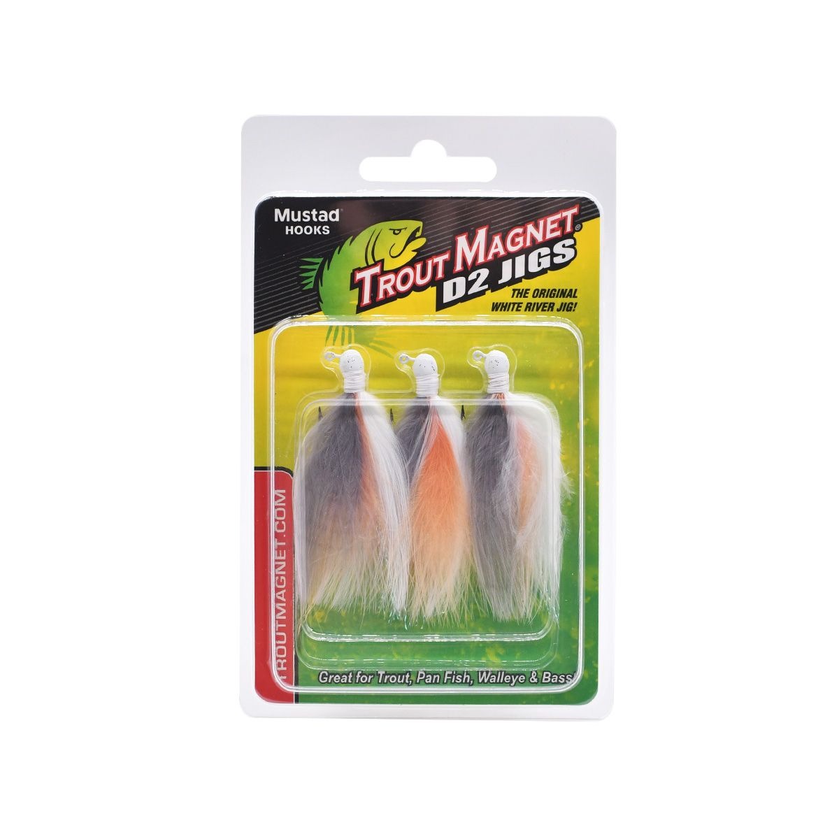 The Leland's Lures 1/16 oz. Trout Magnet D2 Jig, also known as Dudley's Original Marabou Jig, features a unique head shape which comes from a mold that creates a wounded creature presentation as it spirals downward in the water column. This jig is a great choice for catching trout, crappie, walleye, and bass. This pack contains 3 jigs.