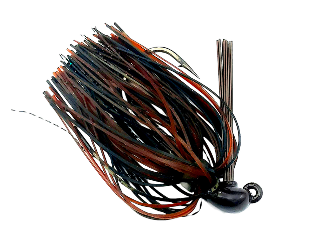 The Vanquish Jig was developed to come through any cover, thanks to its' modified arky style flipping head. It simply will NOT roll over and hang in cover like many flipping jigs available. The flattened keel allows you to skip this jig like a dream. Because they are molded from 97% tungsten, the profile is small, and the jig is incredibly sensitive, never recycled, tungsten molding ensures that you'll feel every piece of structure as you navigate the jig. Custom flash fiber and silicon skirts are wire-tied for durability and flare.
