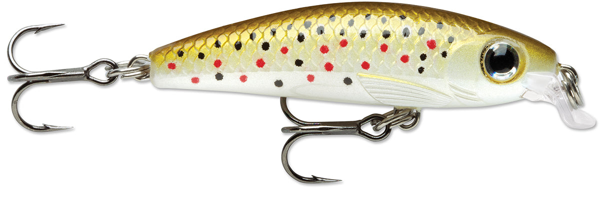 Big action in a small bait, the Ultra Light Minnow is the new gold standard for ultra light baits. Weighted body casts incredibly far for such a small bait. Slow-sinking, it is designed to work from 2-3 feet in the water column. An excellent choice for streams, small ponds and shallow bays and shorelines. Its unique lip design creates an enticing wobbling and rolling action. External etched scales, gills and fins in union with 3D holographic eyes and incredible Rapala ? finishes put this bait in the lead for ultra light choices. Perfect for panfish and trout, each lure is hand-tuned and tank-tested for ultra perfection right out of the box.